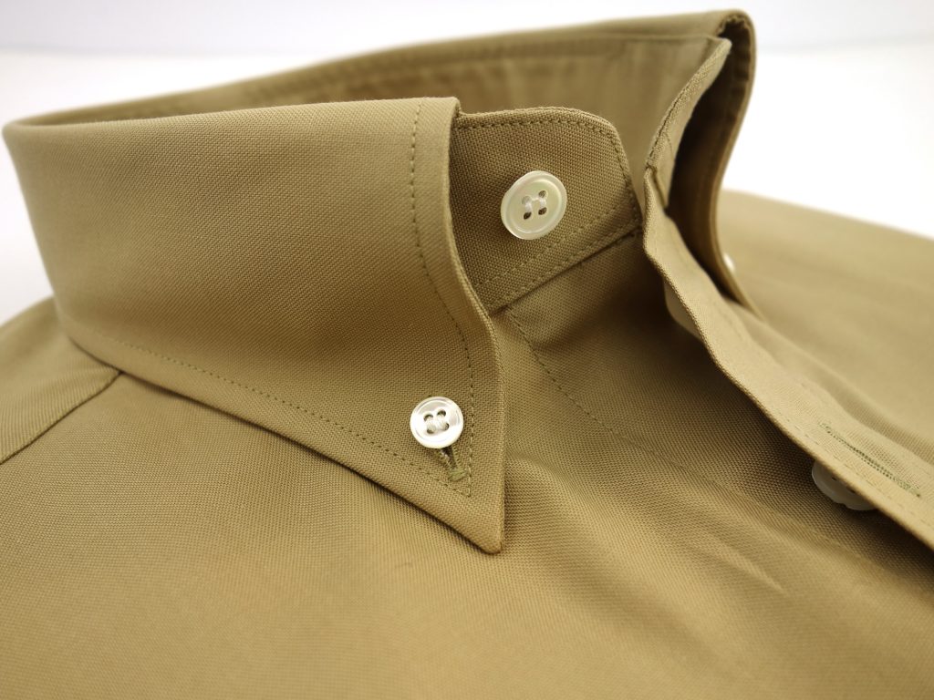 Pour notre première chemise, nous avons sélectionné un tissu oxford uni beige chez Albiate. Nous aimons son côté « toile de coton » qui fait penser à un tissu rustique, mais demeure au toucher très fluide et souple. Le grammage de ce tissu est de 130 grammes/m2 soit une épaisseur intermédiaire qui permet de porter cette chemise tout au long de l’année.