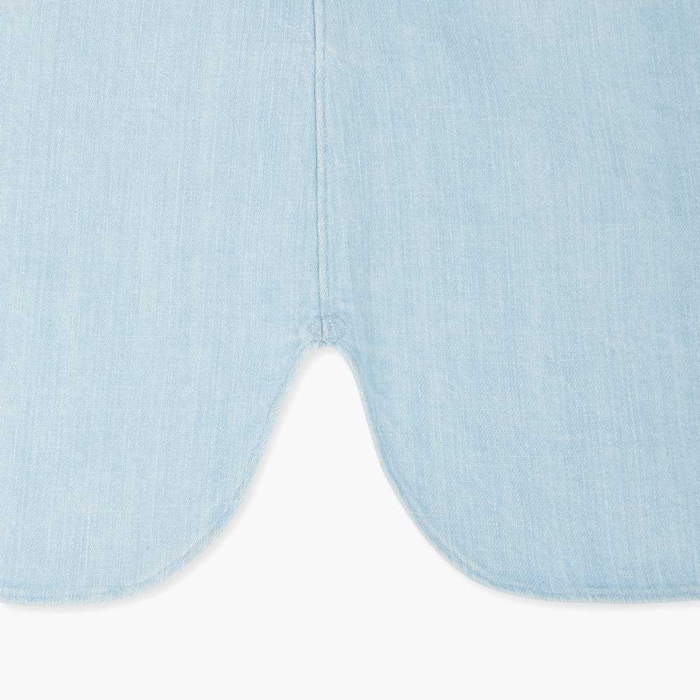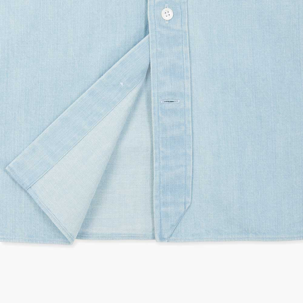 Denim shirt cut from our wearable Japanese thick denim. Soft pointed collar, mother-of-pearl buttons, single pocket. The shirt has been assembled before being washed to give it a vintage look. Washing made-to-measure shirts with shrinkage in mind is a complex technique that our workshop has mastered to perfection.