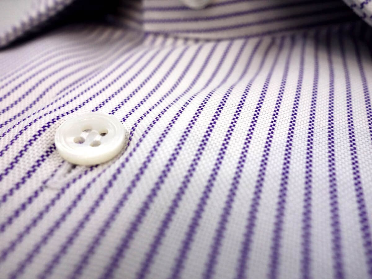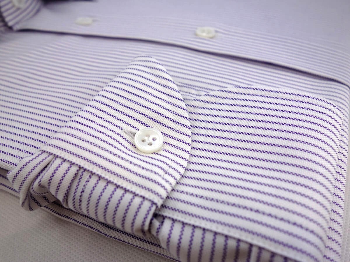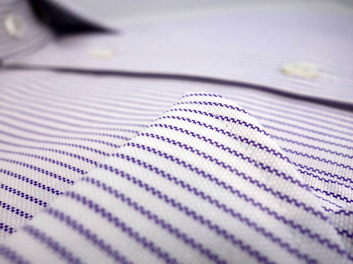 Blue striped Oxford from Thomas Mason. This thicker fabric is suitable for dress shirts as well as more sporty designs. Bluish-mauve.