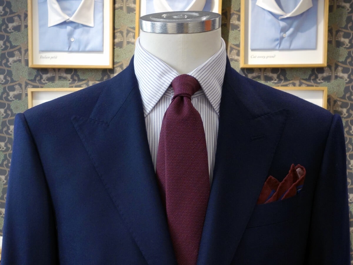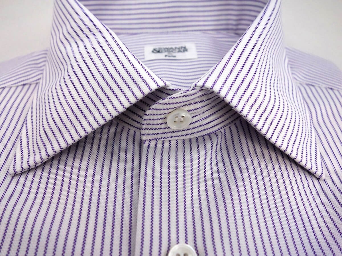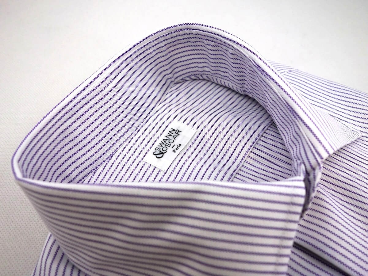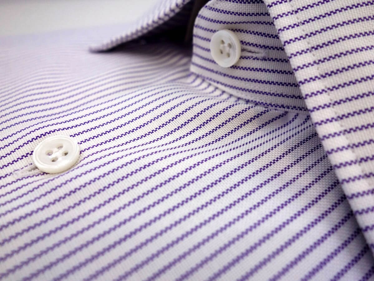 Blue striped Oxford from Thomas Mason. This thicker fabric is suitable for dress shirts as well as more sporty designs. Bluish-mauve.