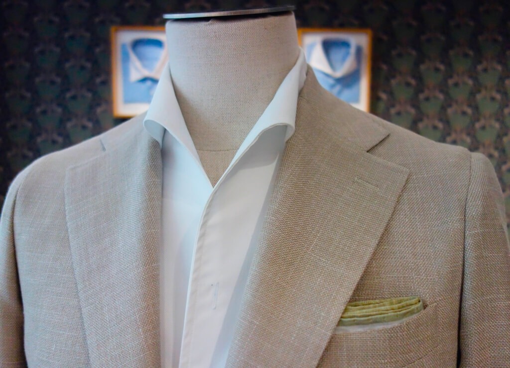 White two-ply Oxford with a titration of 100. This is a superb fabric with pretty sheen. For those which seek an alternative to poplin for a dressy