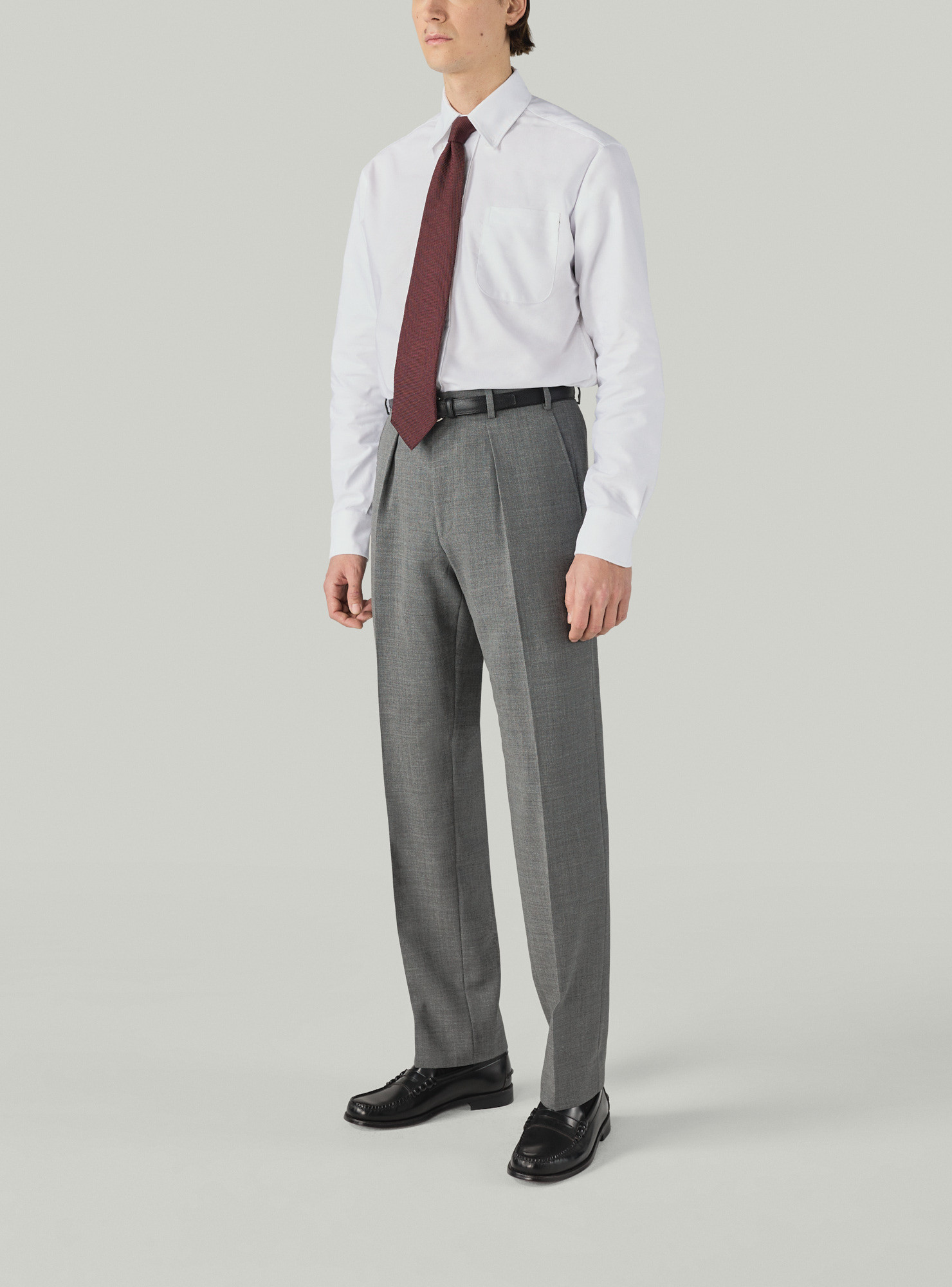 Thick plain white Oxford, woven in Italy. A fabric made from very strong and particularly thick yarns, just like the original Oxford. This Oxford quality is a reissue of a legendary fabric from Thomas Mason.