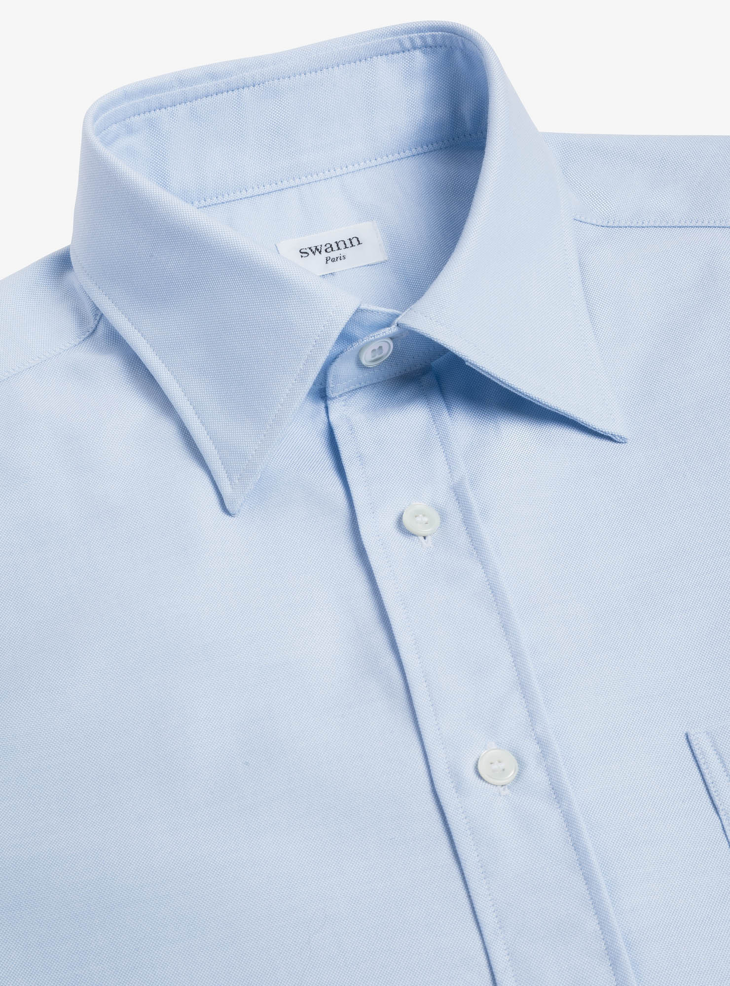 Albini light blue plain double-twisted Oxford. A relatively thick but supple and breathable fabric, woven in ITALY. We recommend a button-down collar, an American front placket and a pocket.