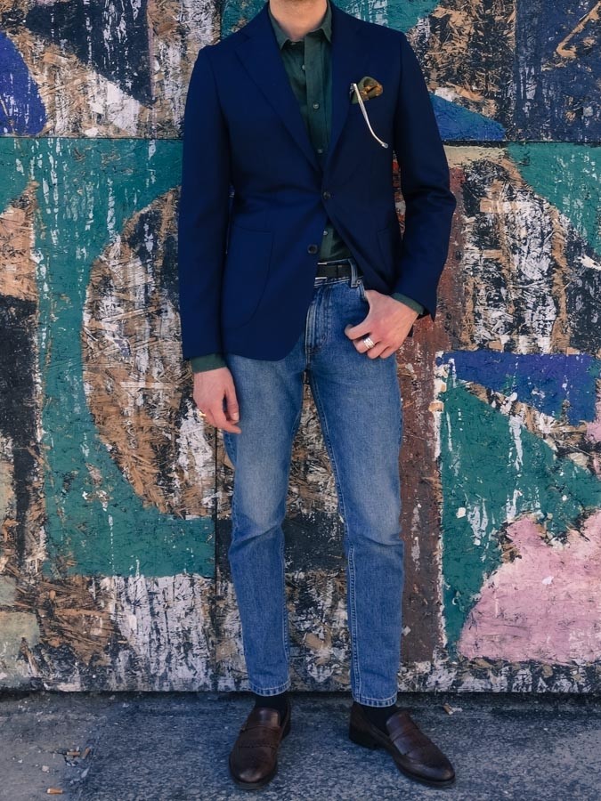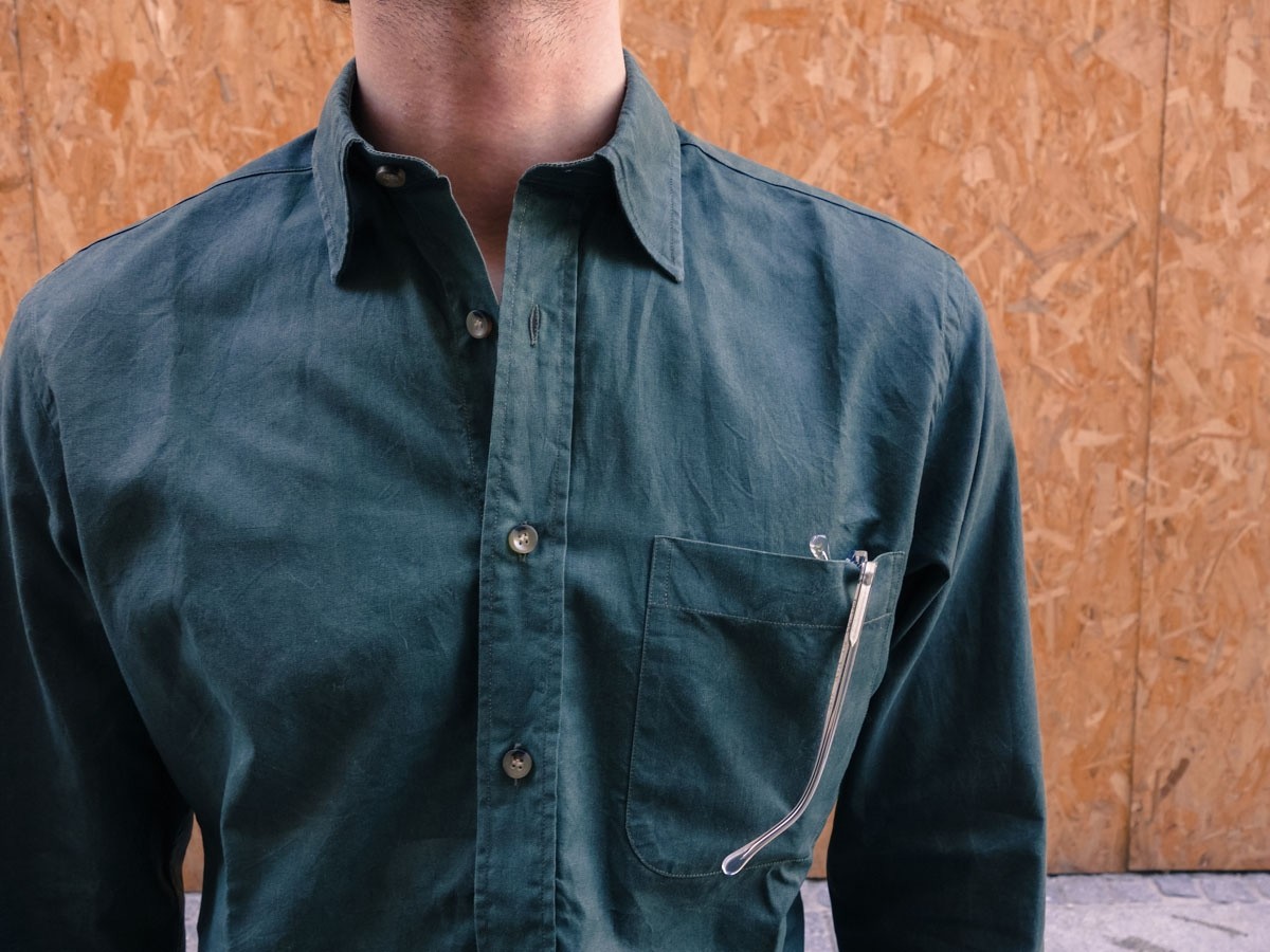 Oxford weave by Albiate in a green colour designed to fade in places and to wash out noticeably for a distressed patina. Wash separately as it will rub off. Distinctive colour and fabric that require special care.