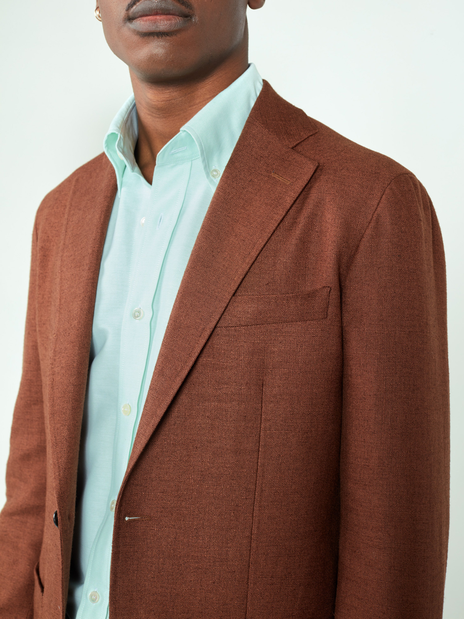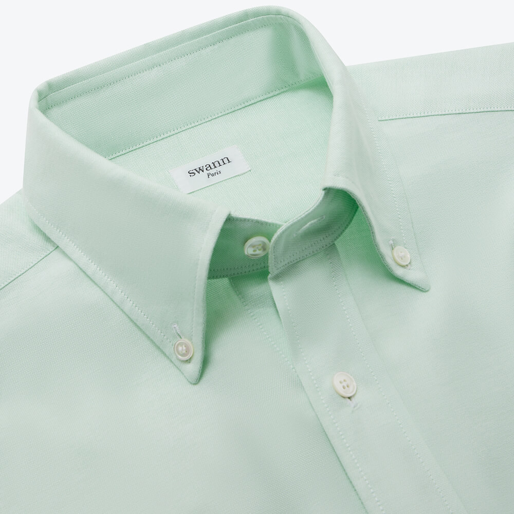 Thick plain light green oxford, a rustic and soft fabric, perfect for sporty OCBD shirts. The Ivy shirt with button-down collar.