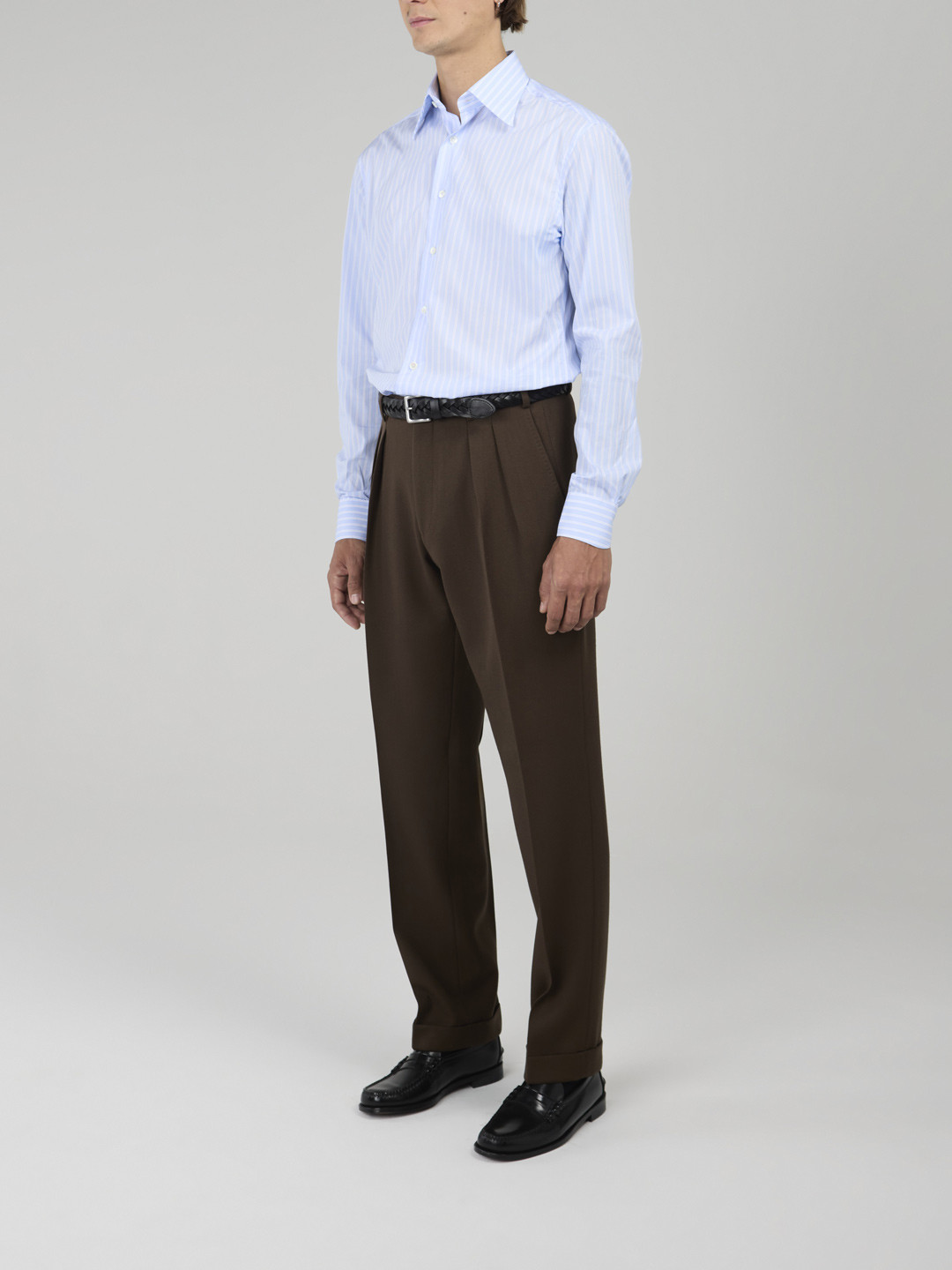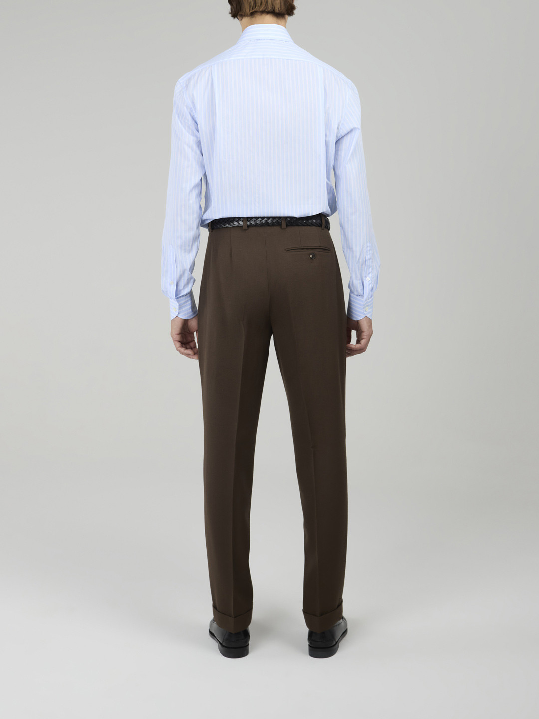 An enchanting lightweight sensation: Piumino is made from single superfine yarns in superior Giza 87 Egyptian cotton. A lightweight yet compact fabric, with a distinct Italian flair boasting brilliance, strength and elegance. Thanks to its silky feel, it adapts to the body as if it were a second skin.