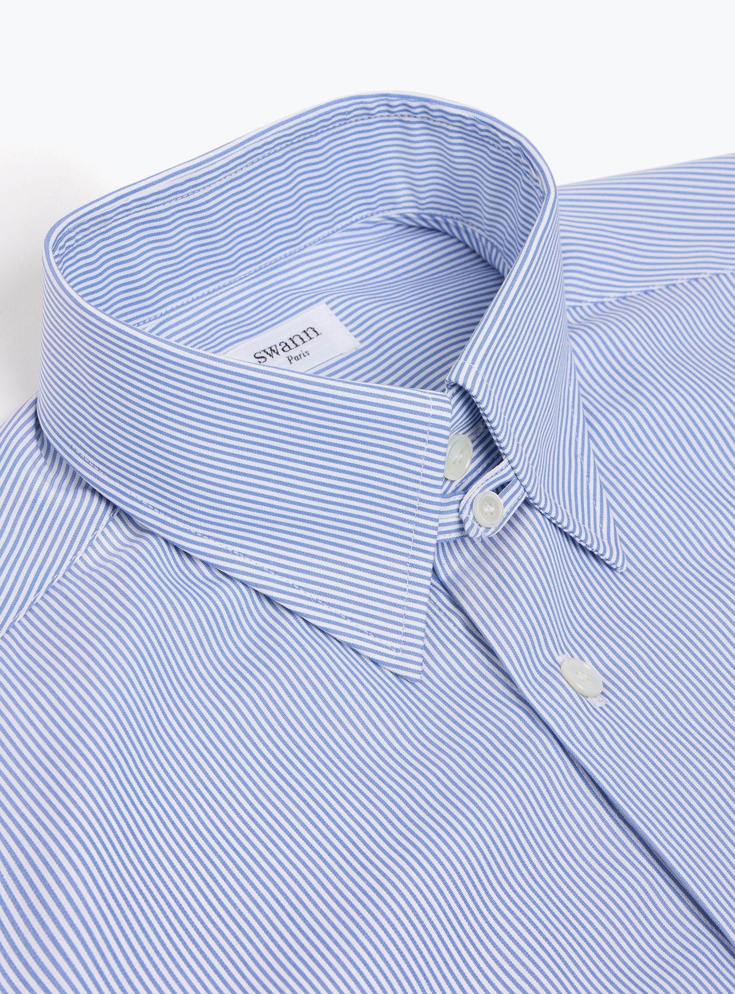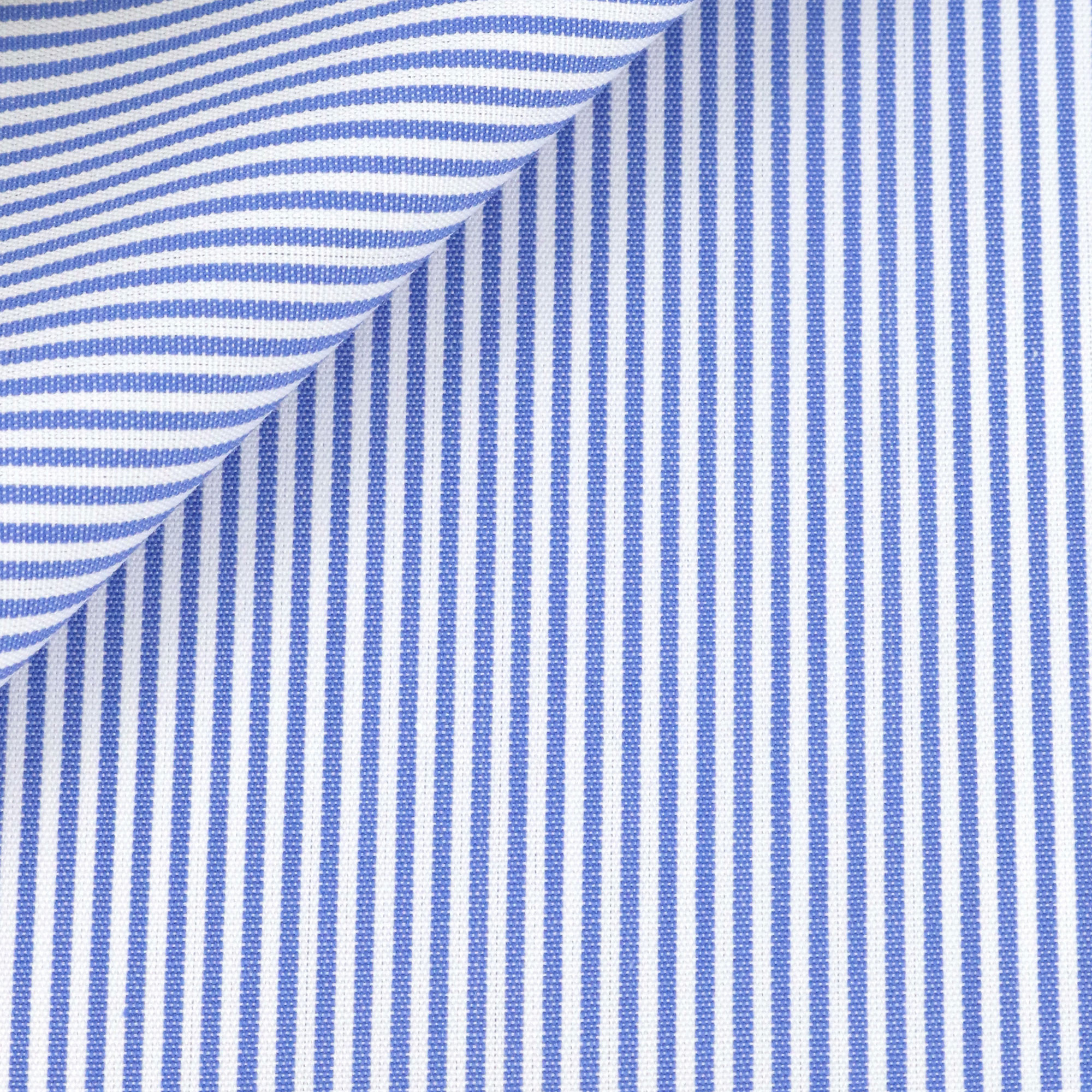 Blue striped, two-ply classic poplin. Ideal for dress shirts in spring and summer.