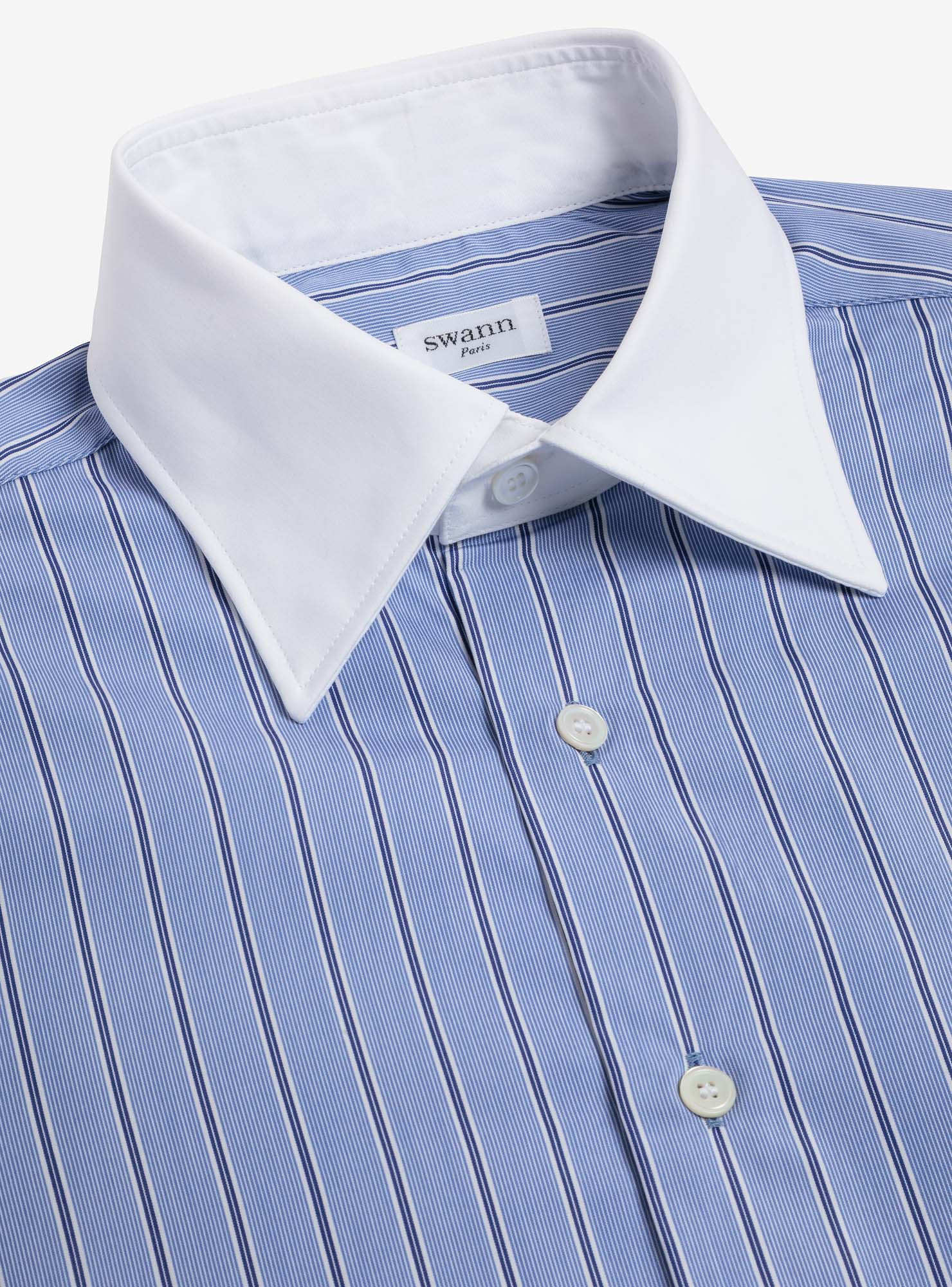 100/2 two-ply organic cotton milleraies poplin. Thomas Mason fabric with double English stripes