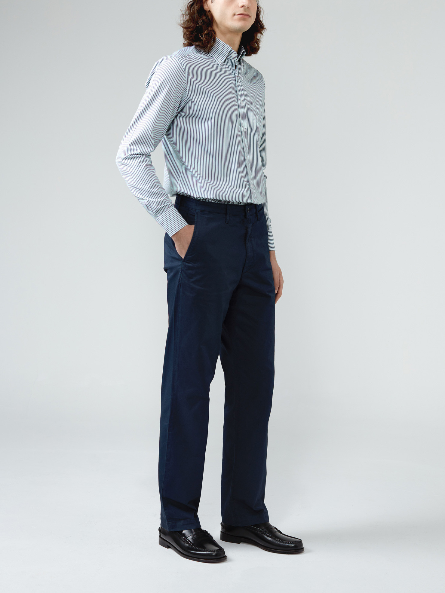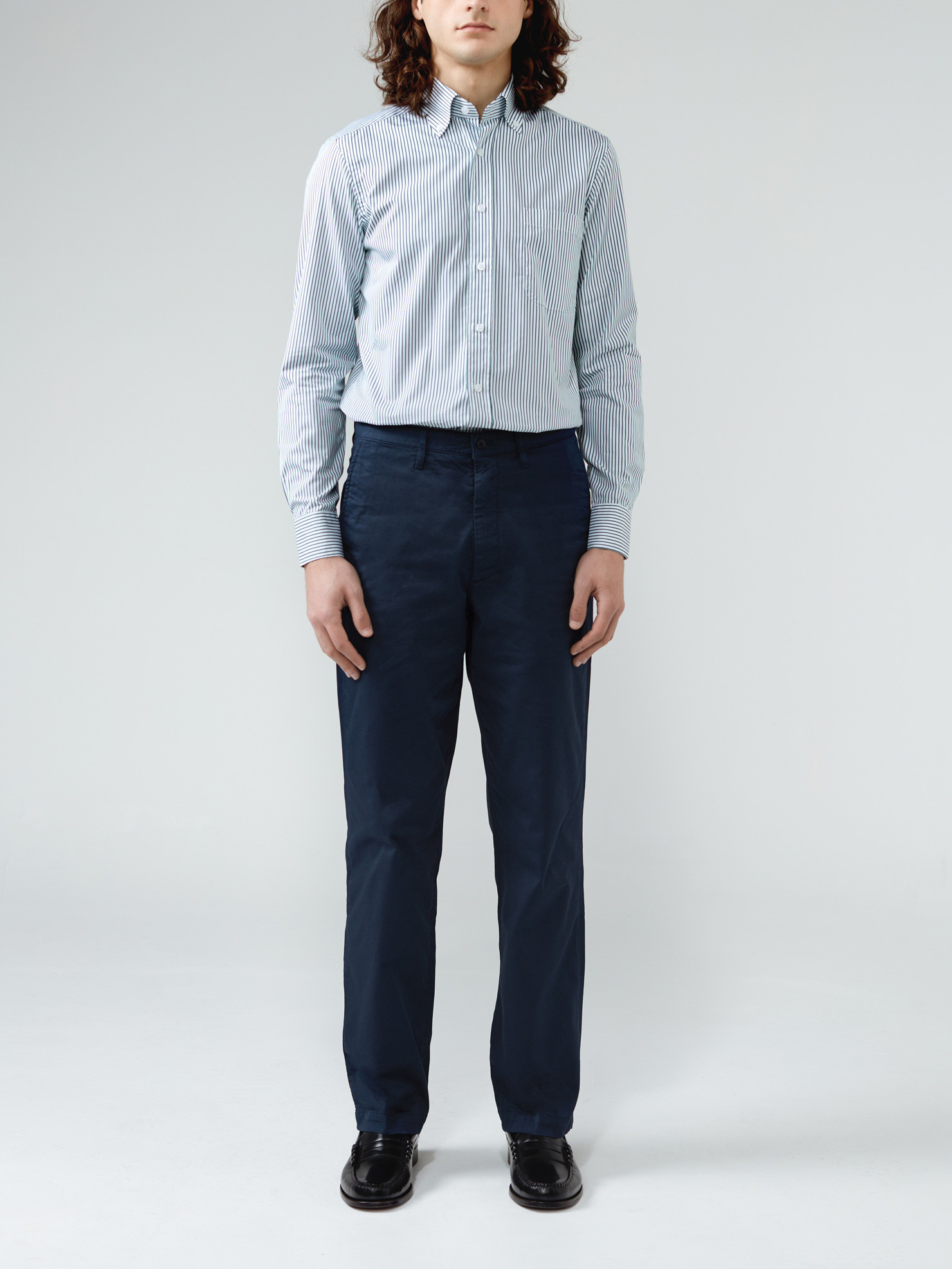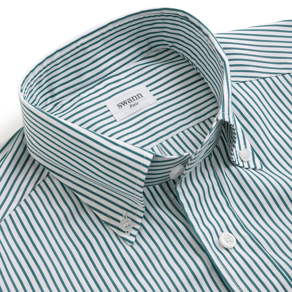 Green striped poplin 120's two ply. Large stripes, ideal for a summer shirt under a blazer or very casual with a very soft button down collar.
