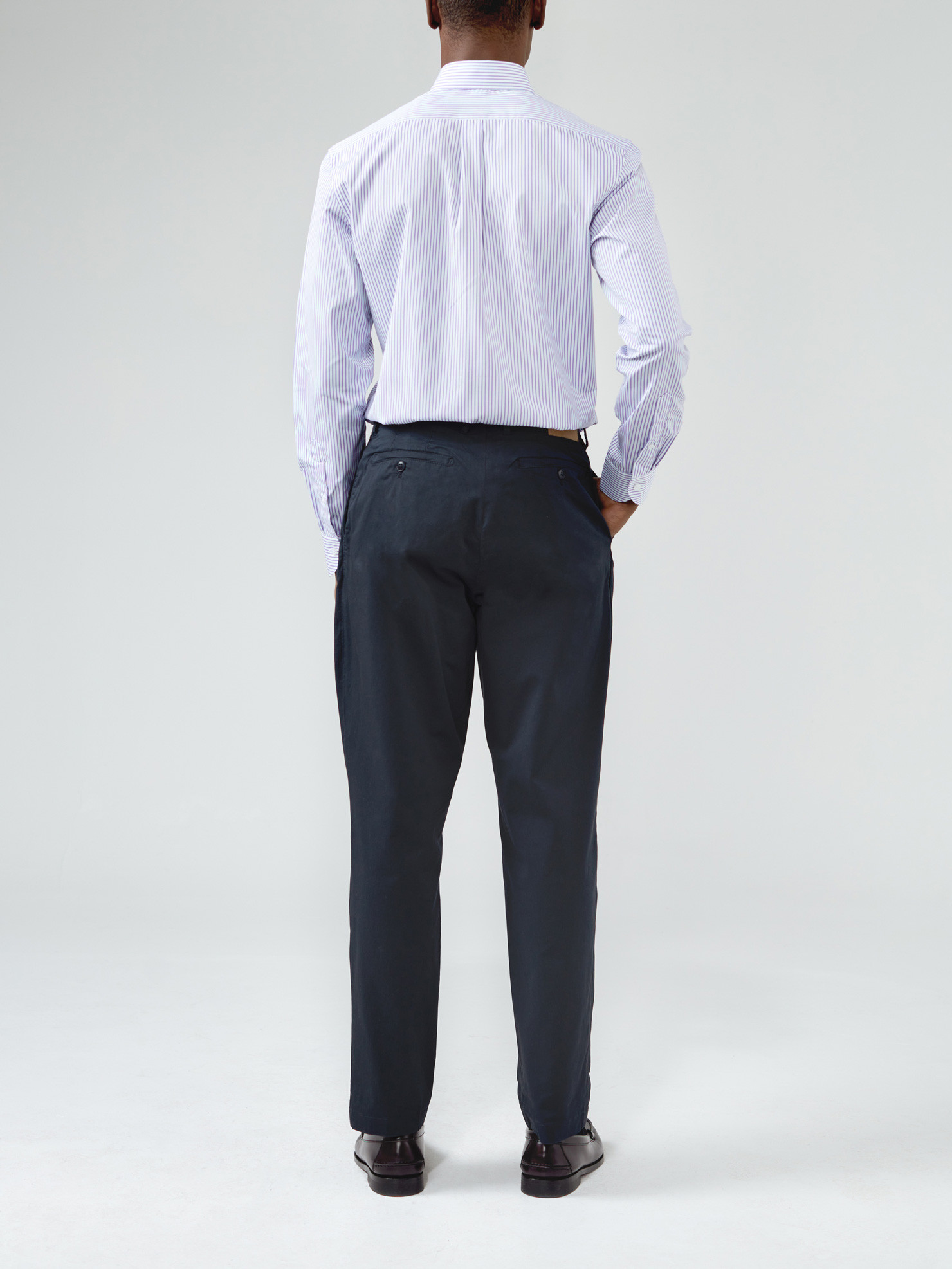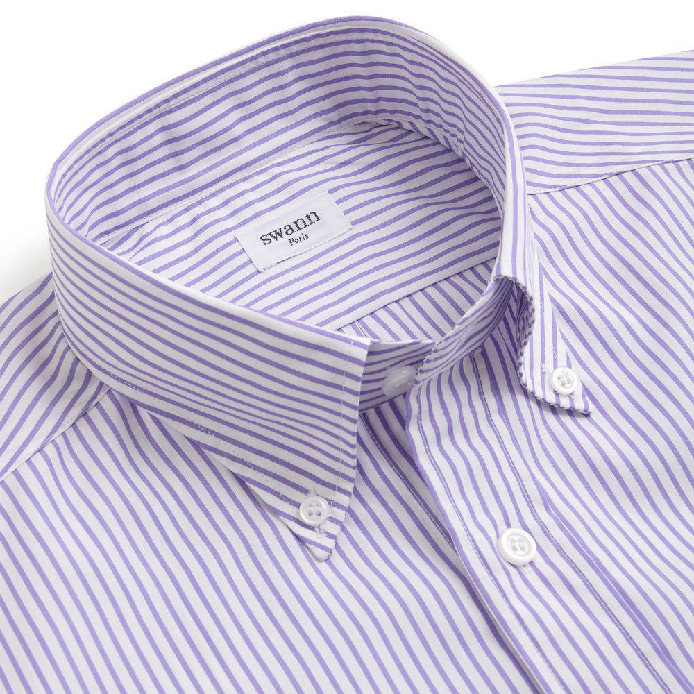 Purple striped poplin 120's two ply. Wide stripes, ideal for a stylish summer shirt under a blazer or very casual with a very soft button down collar.