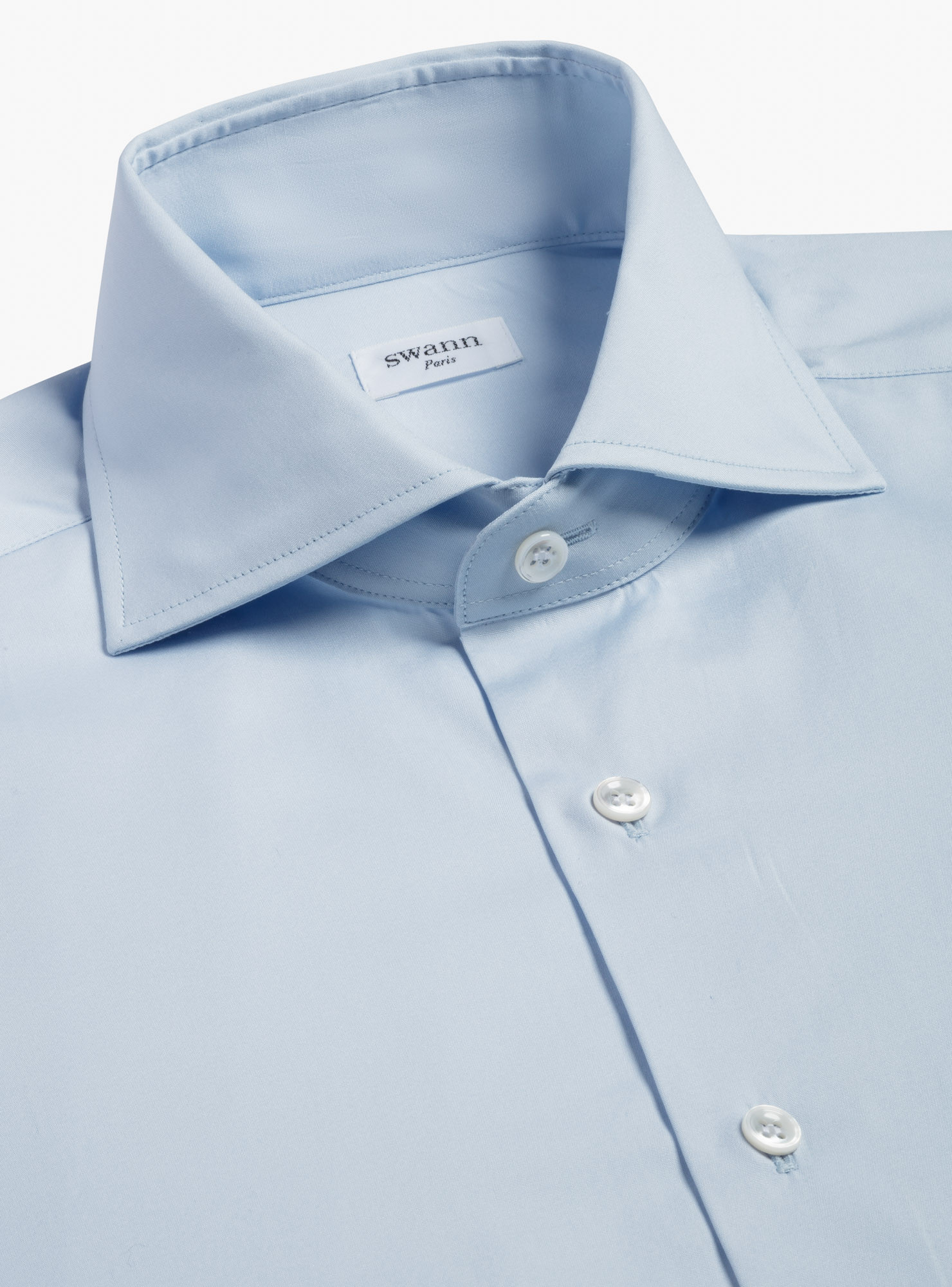 Double-ply sky blue Albini poplin. An elegant pale blue, ideal for a dress shirt.