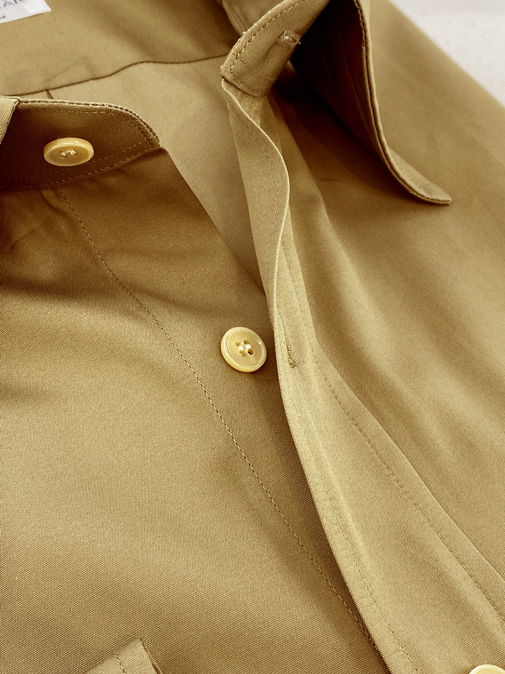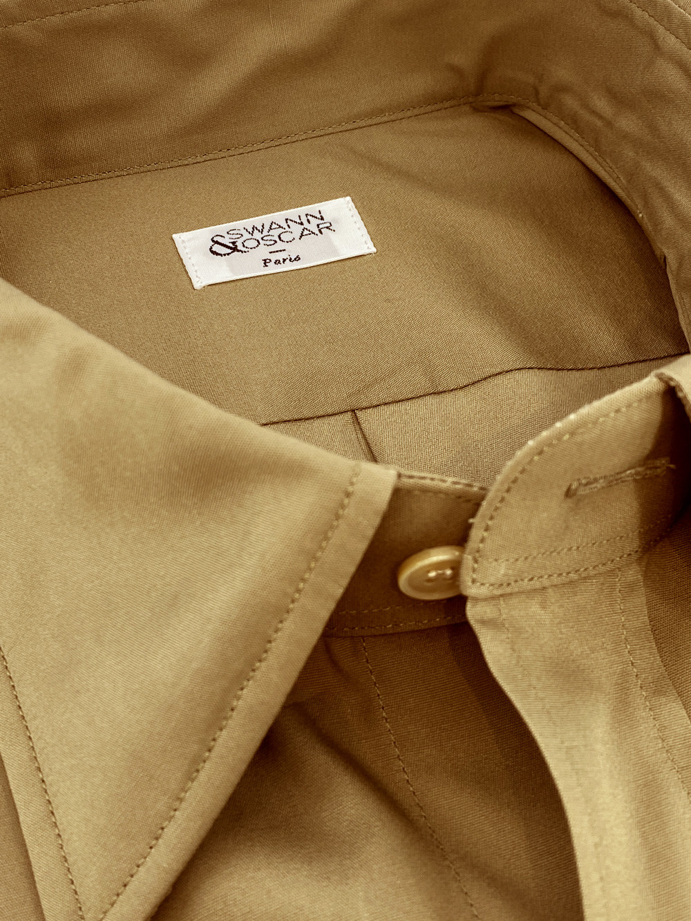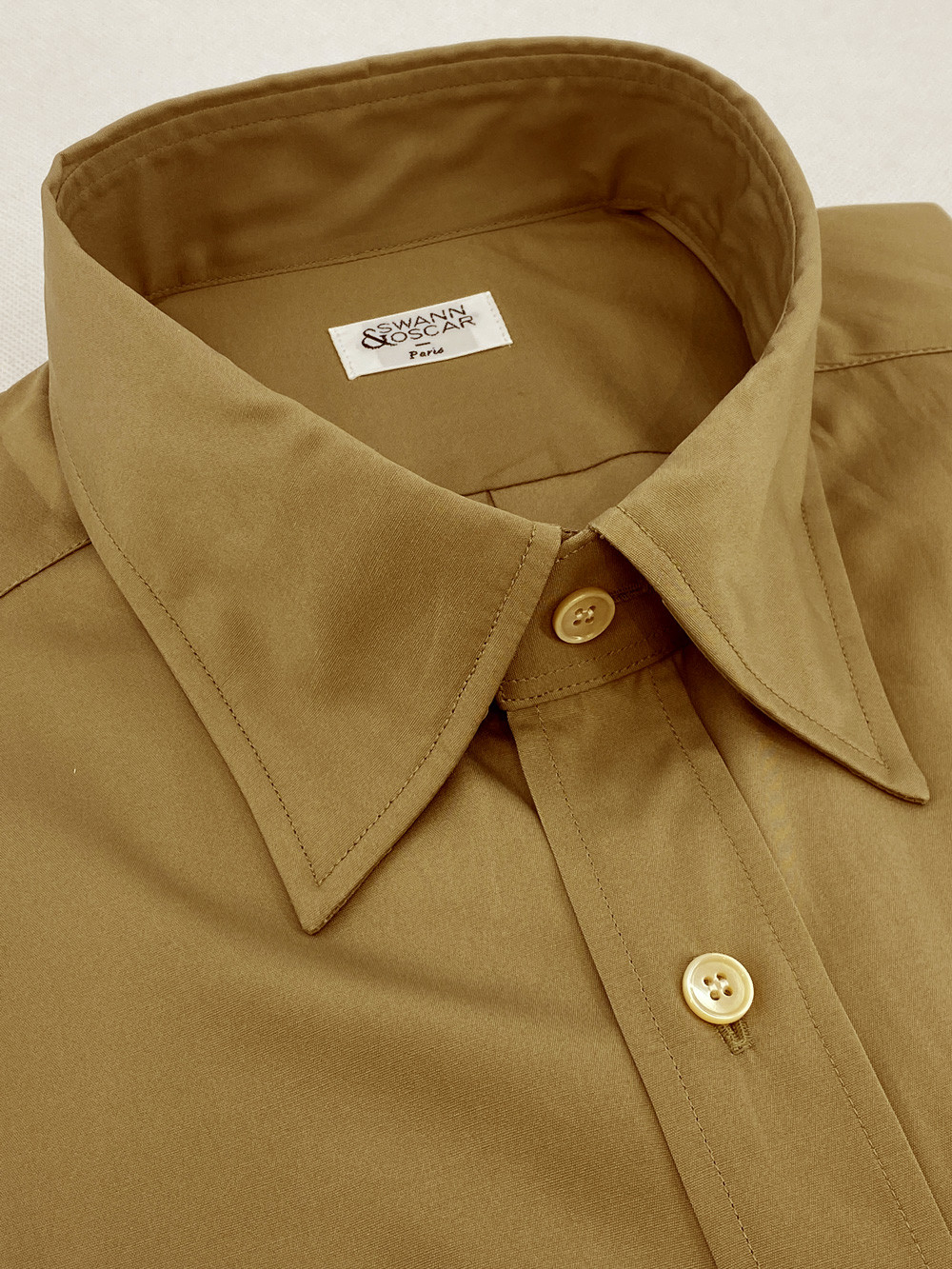 Poplin Albini green two-ply. The green pulls on the bronze. Sport shirt to wear with a chino, jeans and even under a blazer. With a swallow collar or a very soft button-down collar.