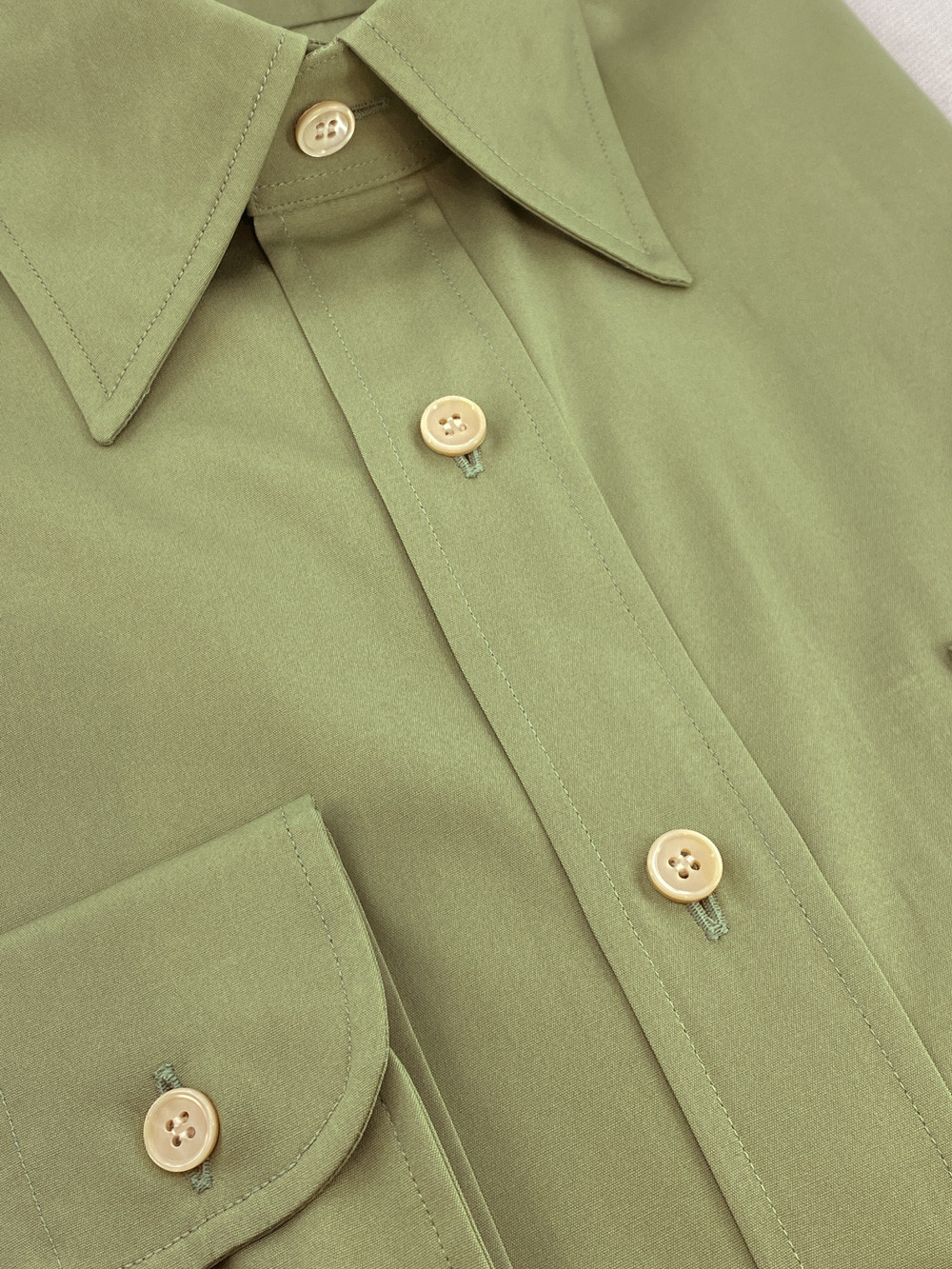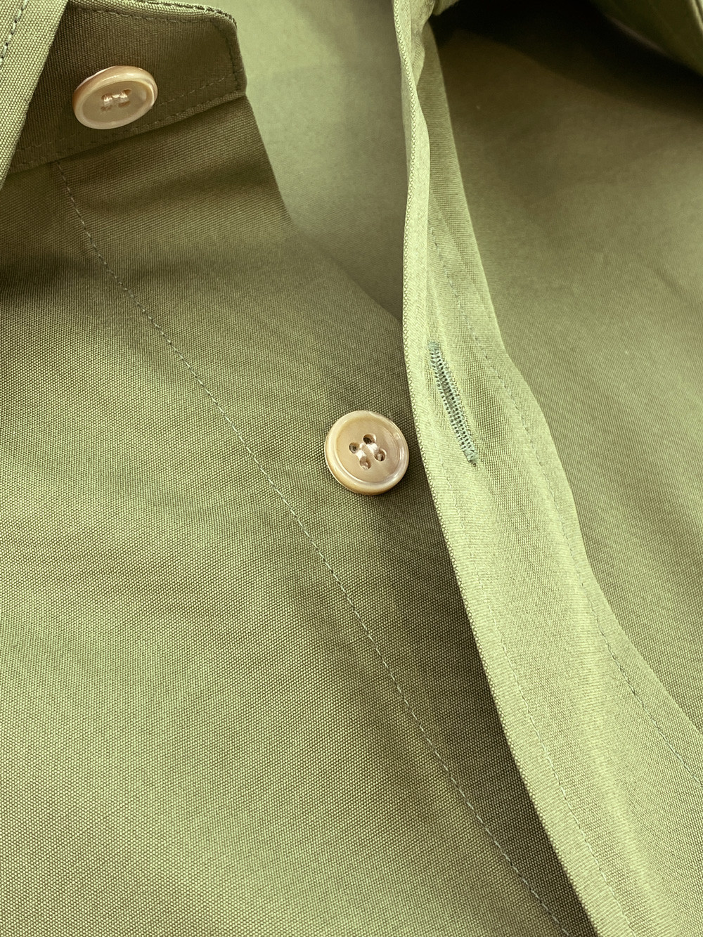 Our standard shirt is put together with a single, continuous movement encapsulating both the side seams and the seam along the sleeves.
