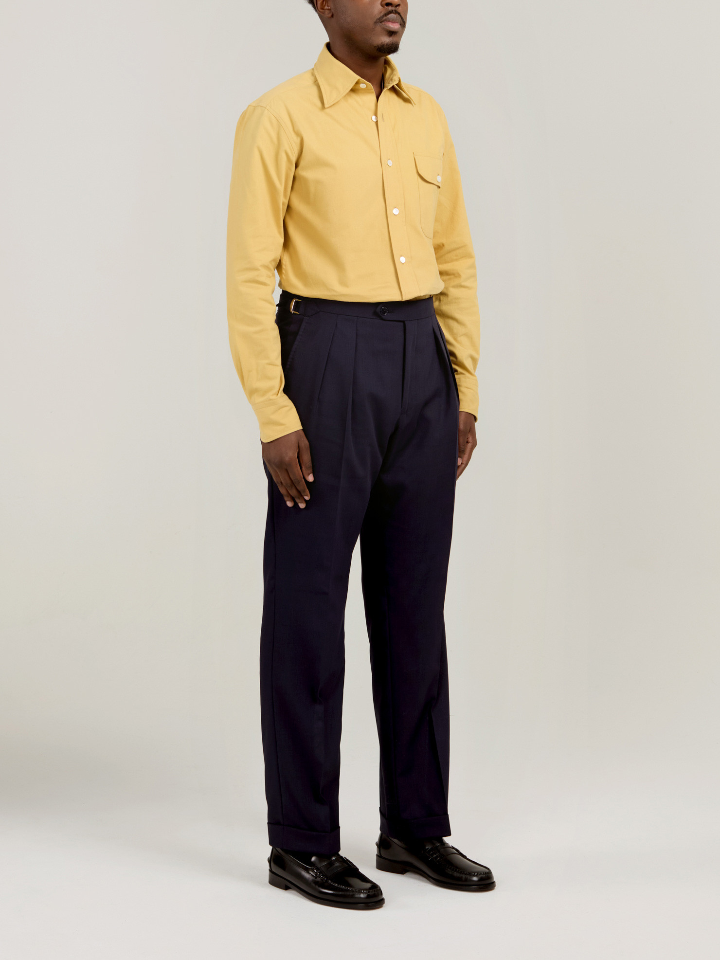 Beige-to-yellow cotton gabardine from Thomas Mason. A thick fabric with exceptional wearability. Watch out, this might just become your favorite weekend shirt. Limited quantity...