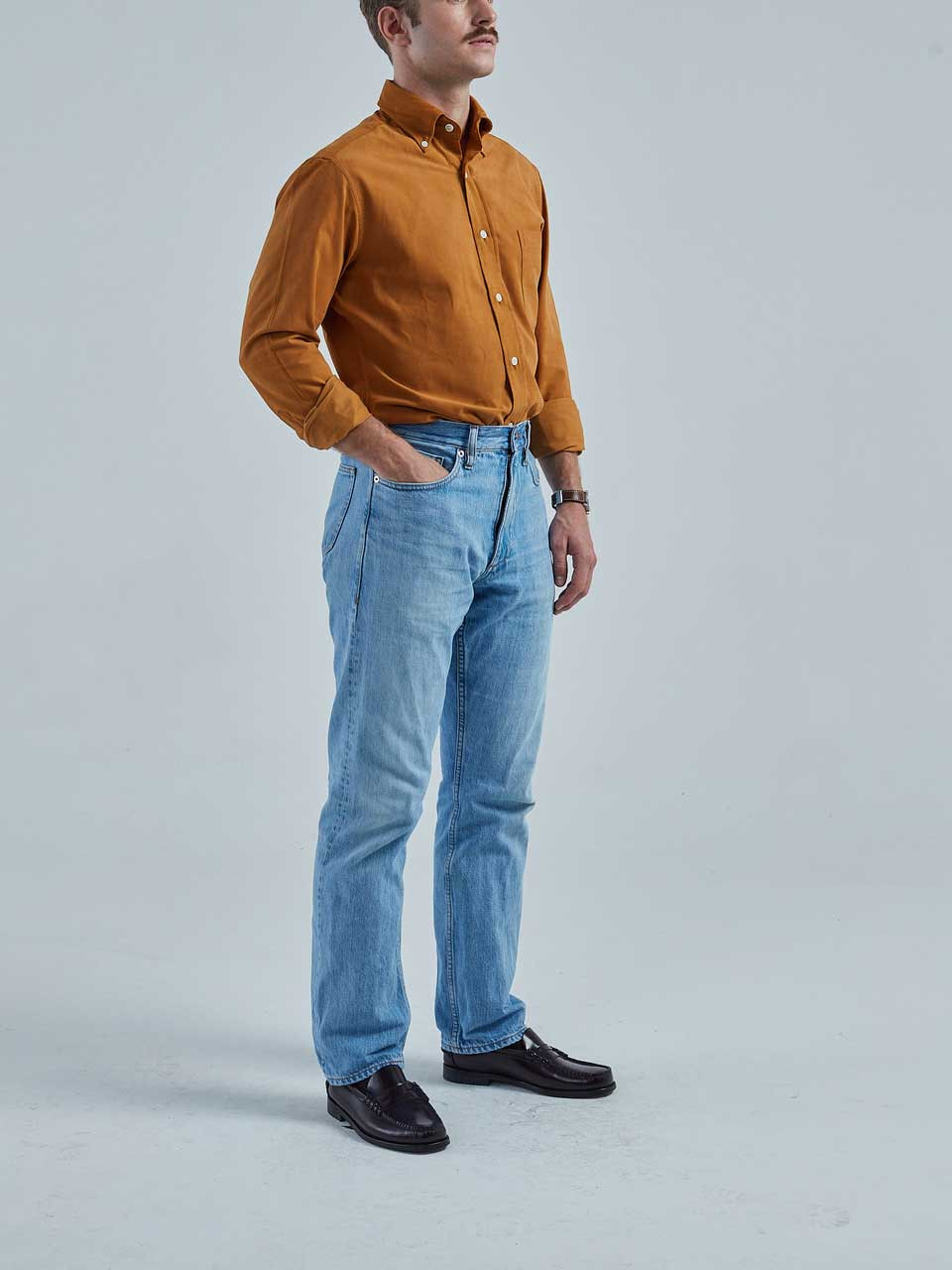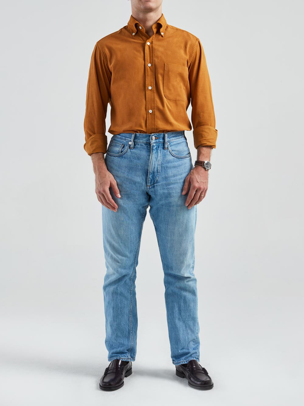 Camel corduroy from Albini. Fabric with thin sides, often called "baby cord", warm and comfortable, it is a great sport shirt. The collars that we advise you: Buttoned Amalfi, Soft Swallow or Positano.
