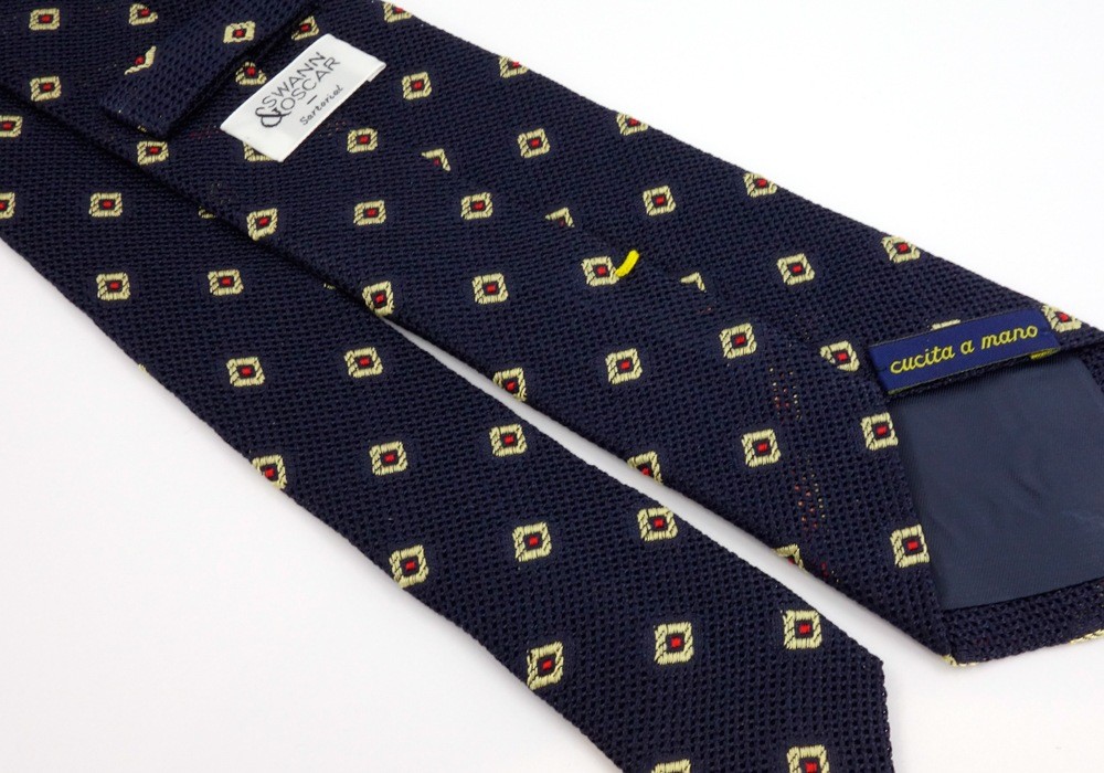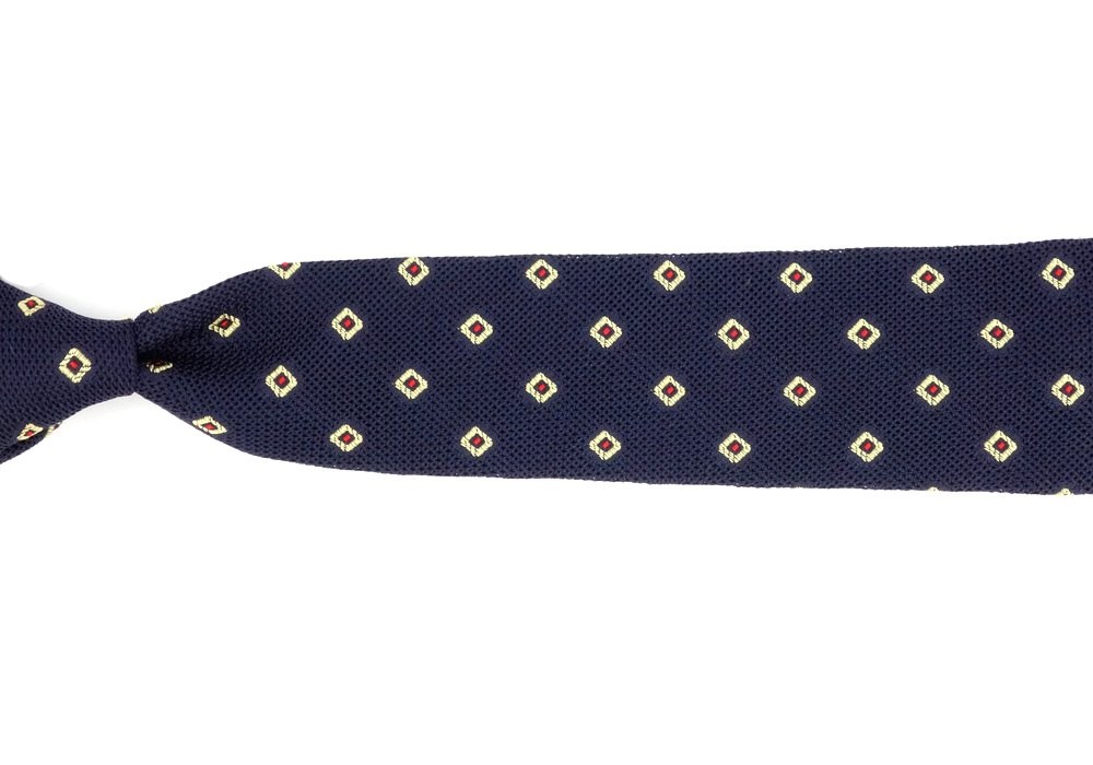 Jacquard is a weaving technique for producing a pattern. A little vintage, but definitely not old-fashioned! This pattern adds style to a basic tie, like a navy blue grenadine silk.