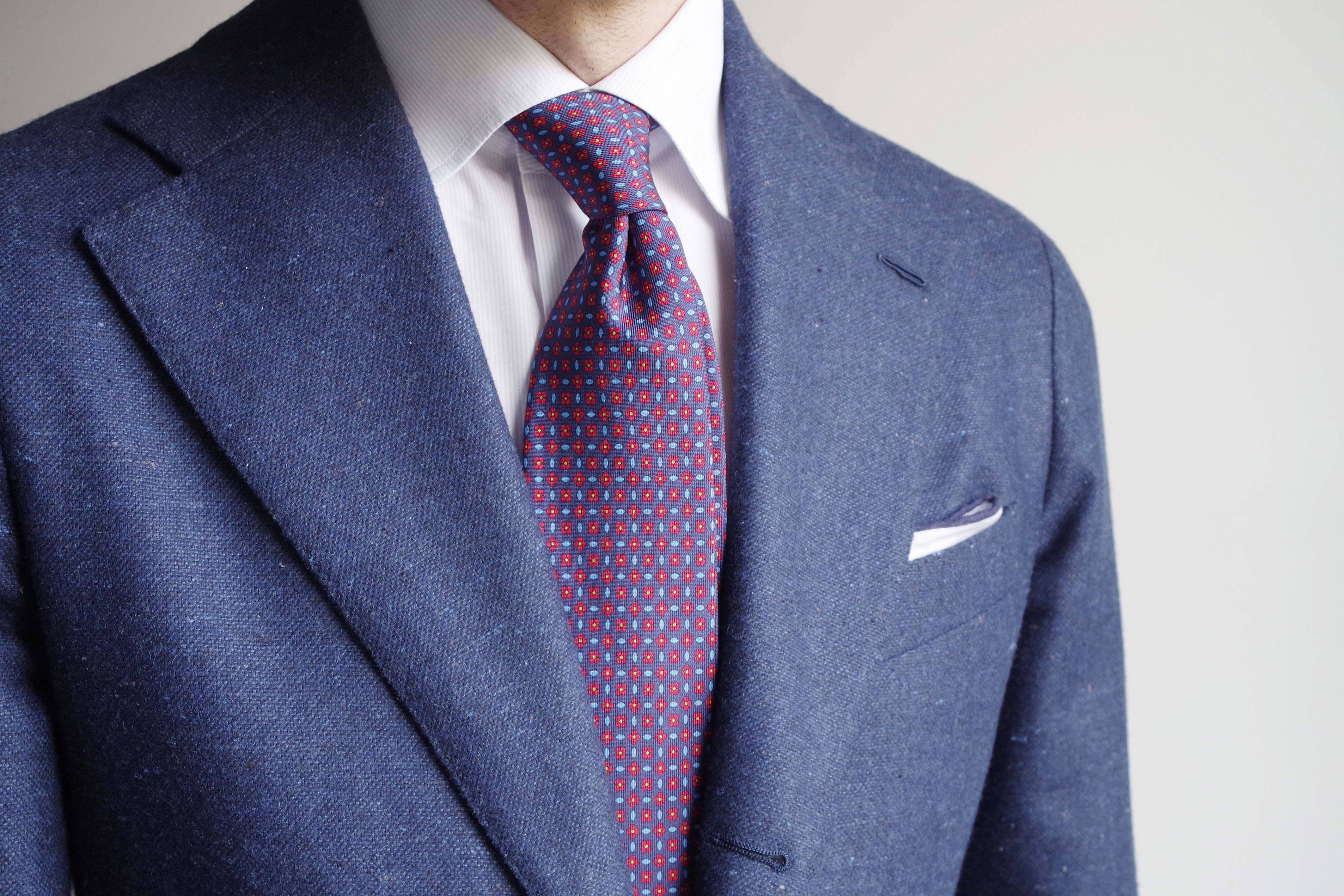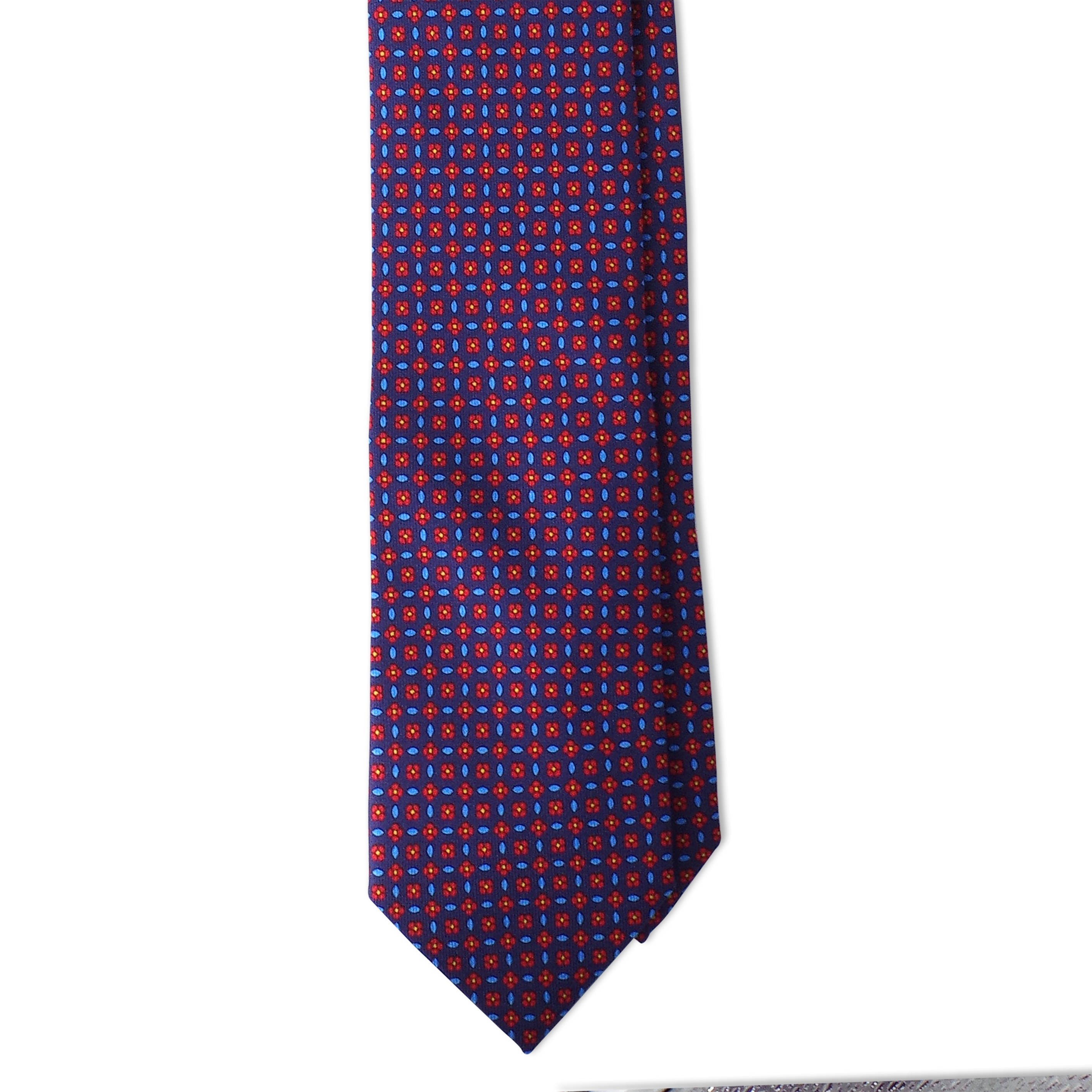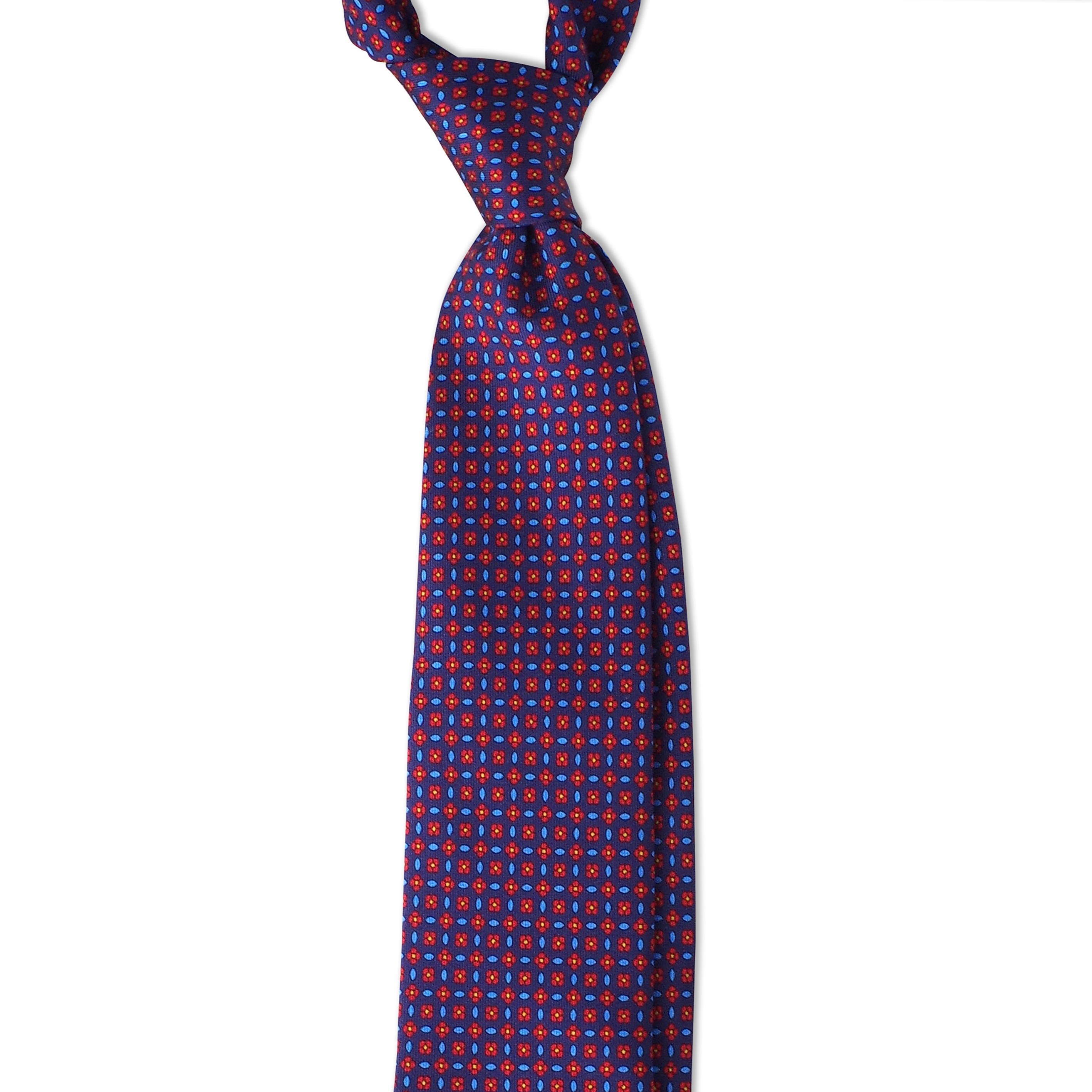 The navy-blue silk of this tie gives it a particularly luxurious character with a floral feel. This tie is ideal in combination with a white shirt to set it off, combined with a discreet and traditional handkerchief. You could also opt for a more daring, casual and Italian style.