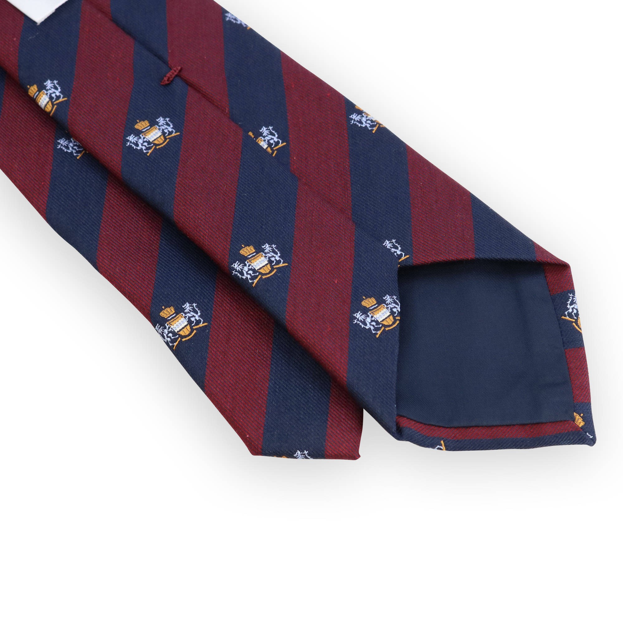 Bordeaux and blue club tie with bleu coat of arms