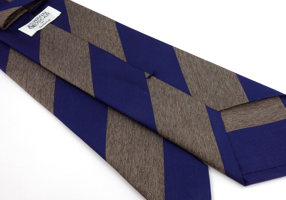 The club tie is back! This silk model will go just as well with your office outfits, your suits or a more relaxed look. This tie will go very well with any clothes in shades of blue. For a relaxed or summer outfit, you can even wear it with a beige cotton suit, for example, or a simple pair of beige chinos.