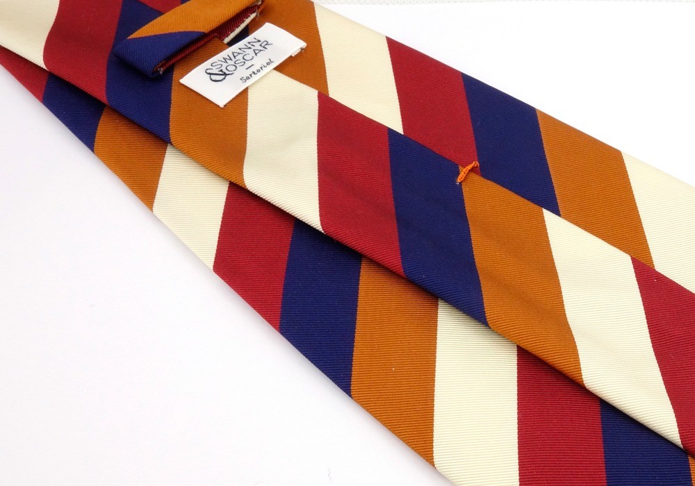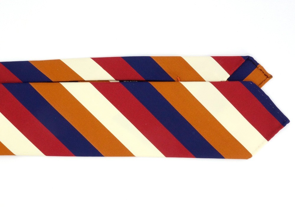 A tie for men with well-developed taste. At first glance it's not easy to see what you can wear this tie with. To help you, think of a mostly plain outfit, (a Neapolitan blue or beige cotton suit, for example). Tie lovers will find a solution very easily and will have fun finding things to wear with this characterful tie. Its unlined construction with hand-rolled points will delight lovers of beautiful ties. A unique piece!