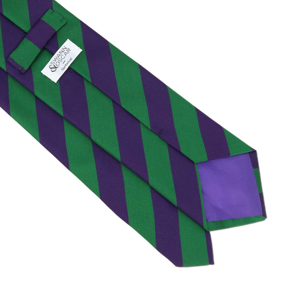 Green and purple club tie. Very elegant, inspired by the "regimental" ties of the English army corps. It is made in Paris at a century-old fashion house.