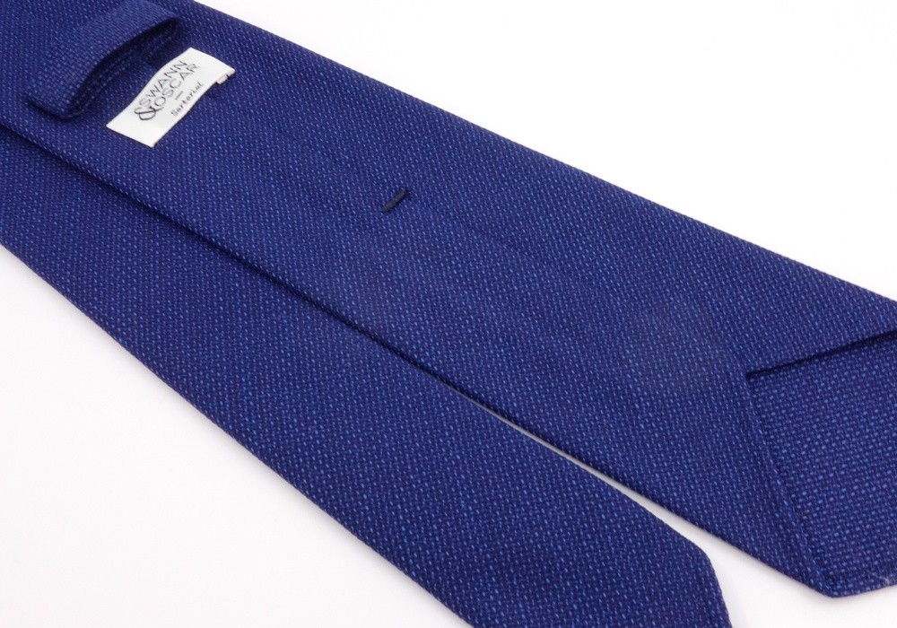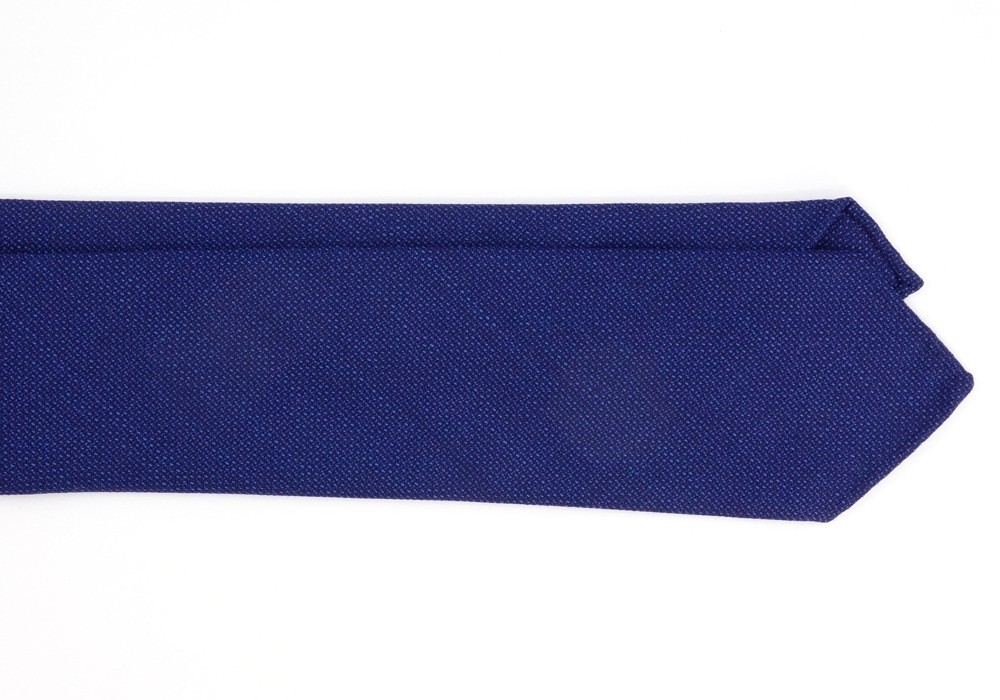 A very light wool tie for wearing in spring and summer! Its texture is very light and similar to linen. It is nevertheless a wool tie which will keep its shape. Its unlined construction means it is very fluid. And tie lovers will appreciate the hand rolled points.