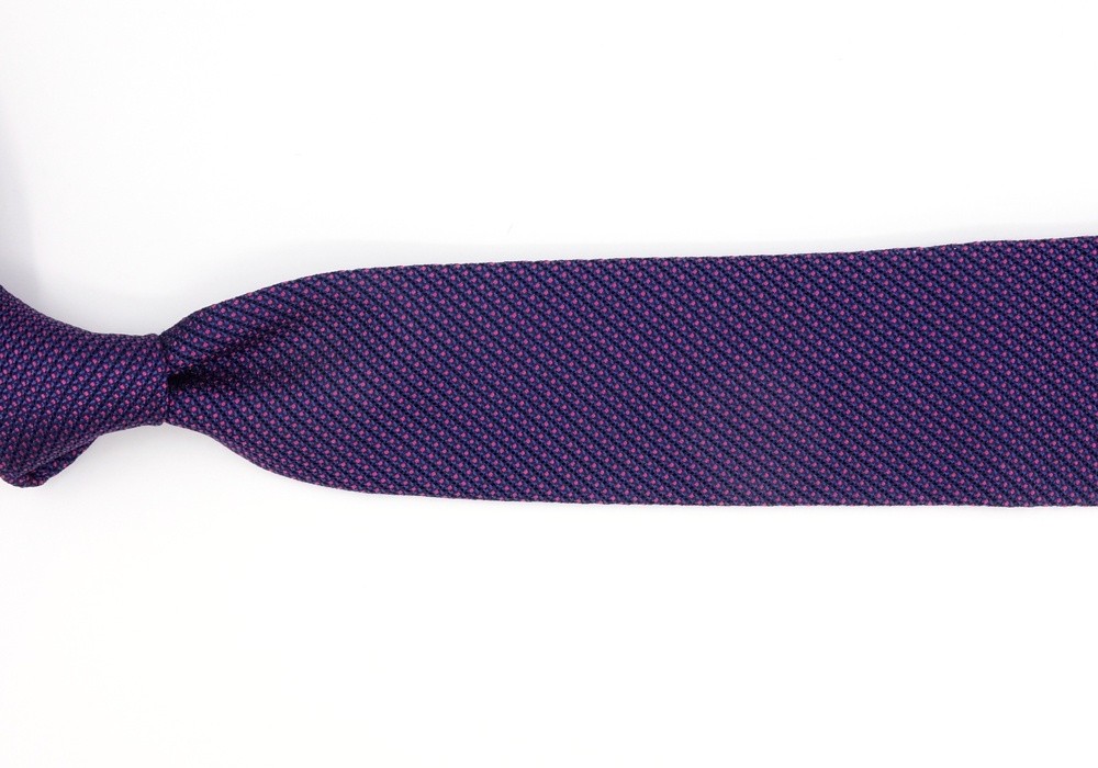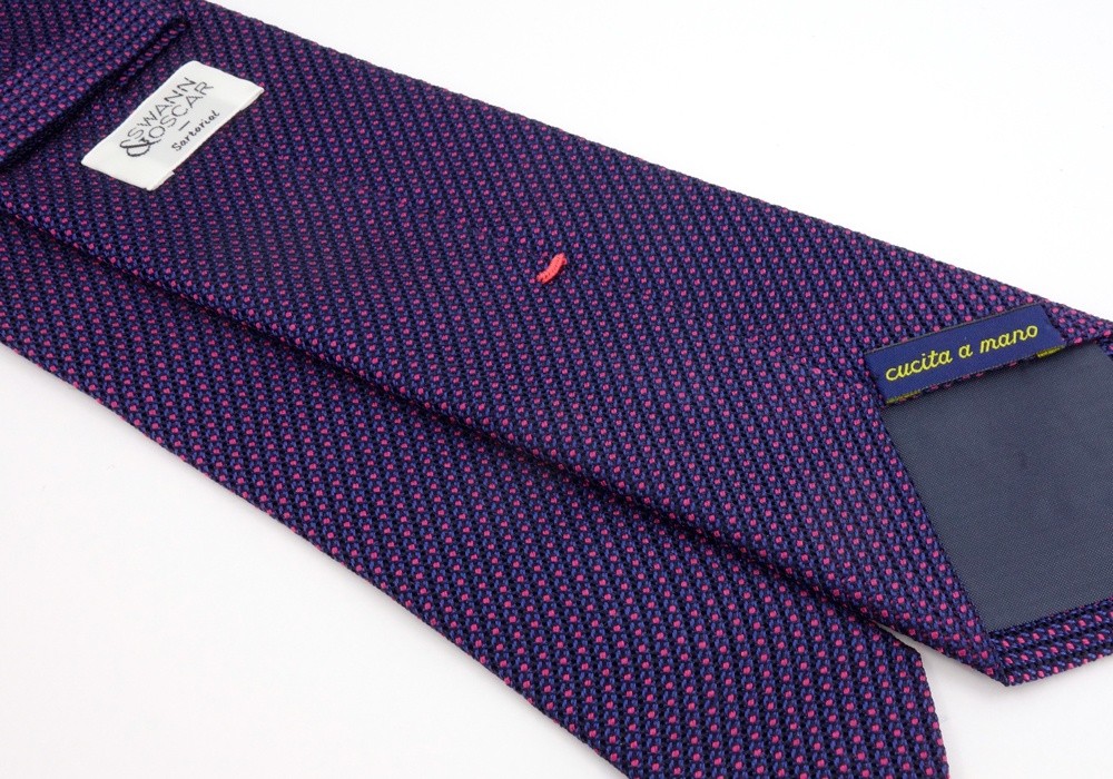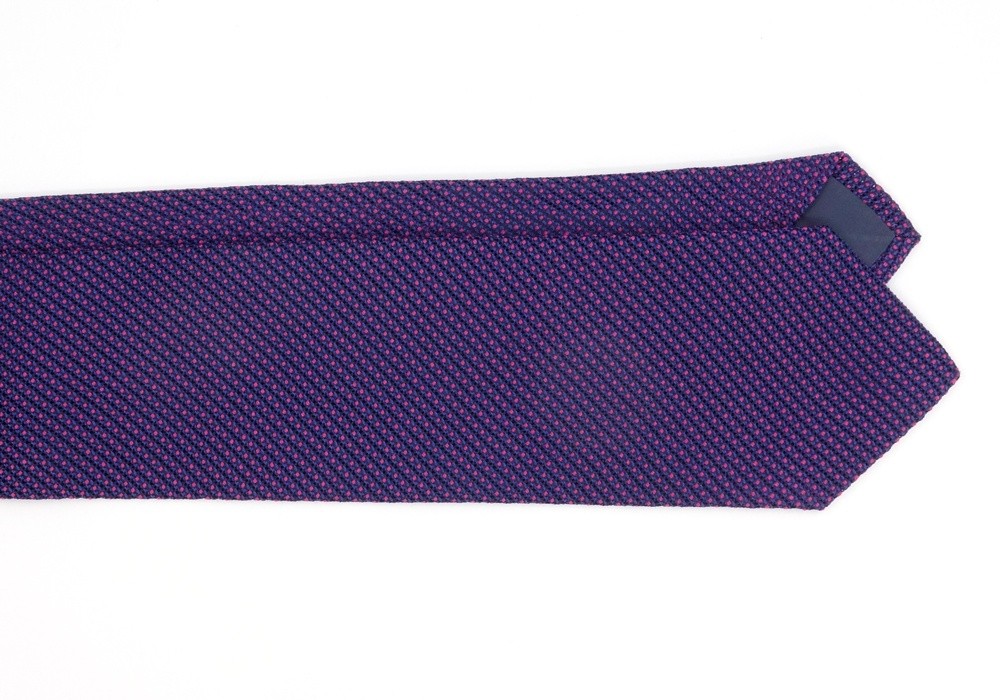 A plain tie that's not really plain and is far from a simple blue tie... which you can see when you look more closely at it. The very airy silk grenadine weave reveals texture and a complementary colour that matches in perfectly: a little touch of pink, which always goes well with blue to update classics.