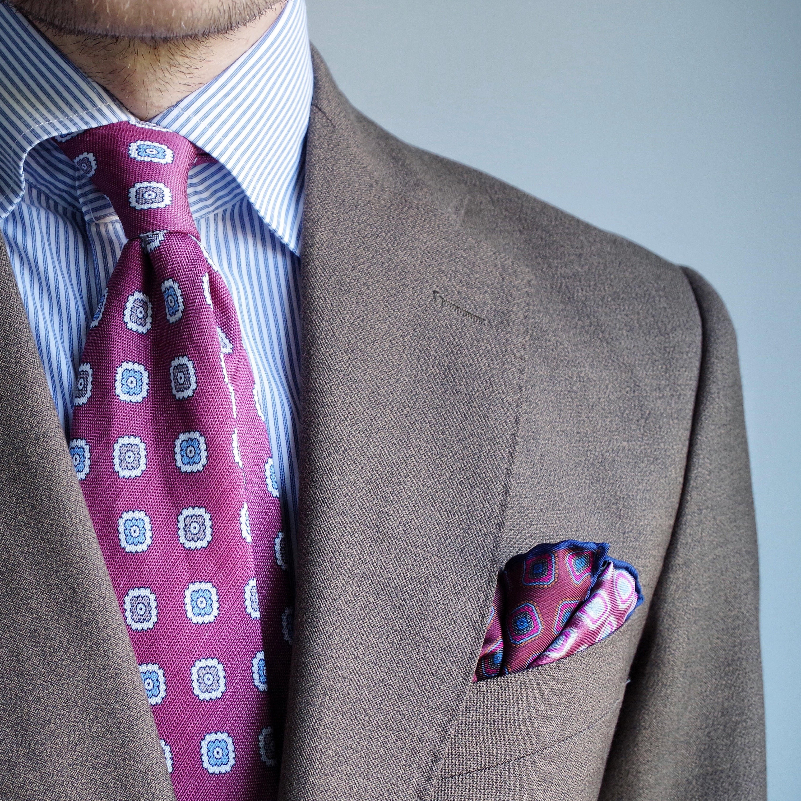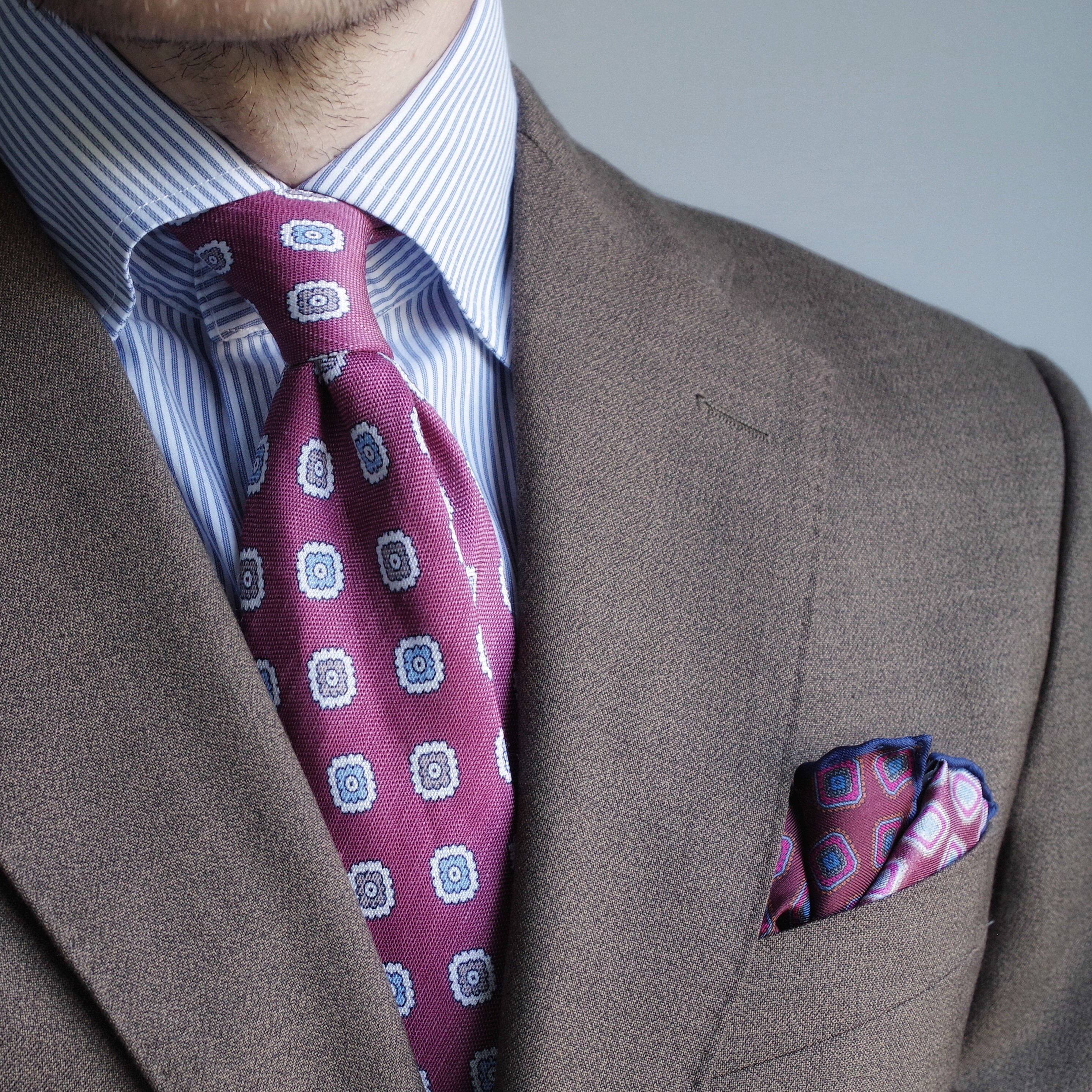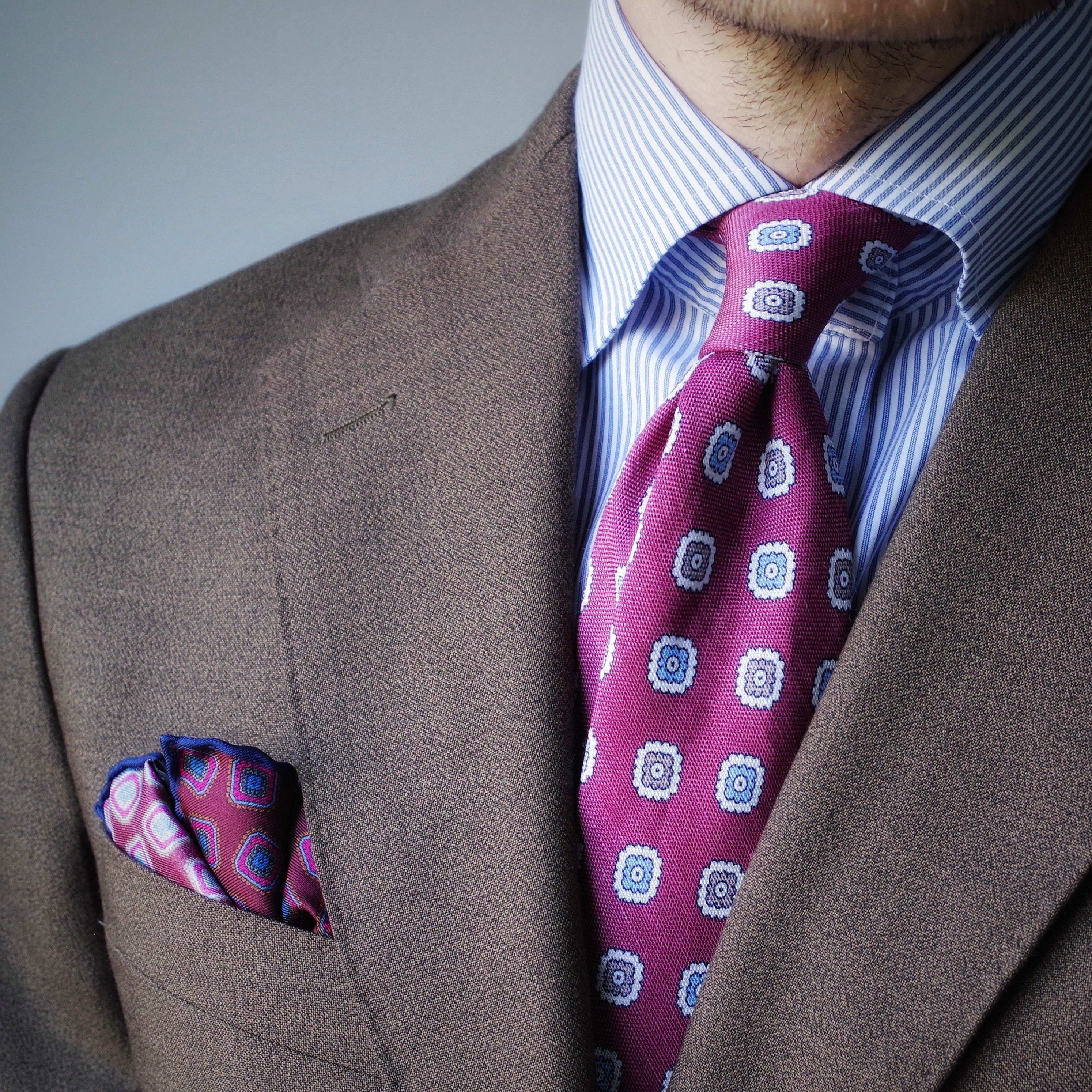 This design will combine well with all kinds of shirt fabric patterns. A jacket or a suit in a more striking blue colour would be perfect, but you can also imagine it working well with a grey suit and a sky blue striped shirt.