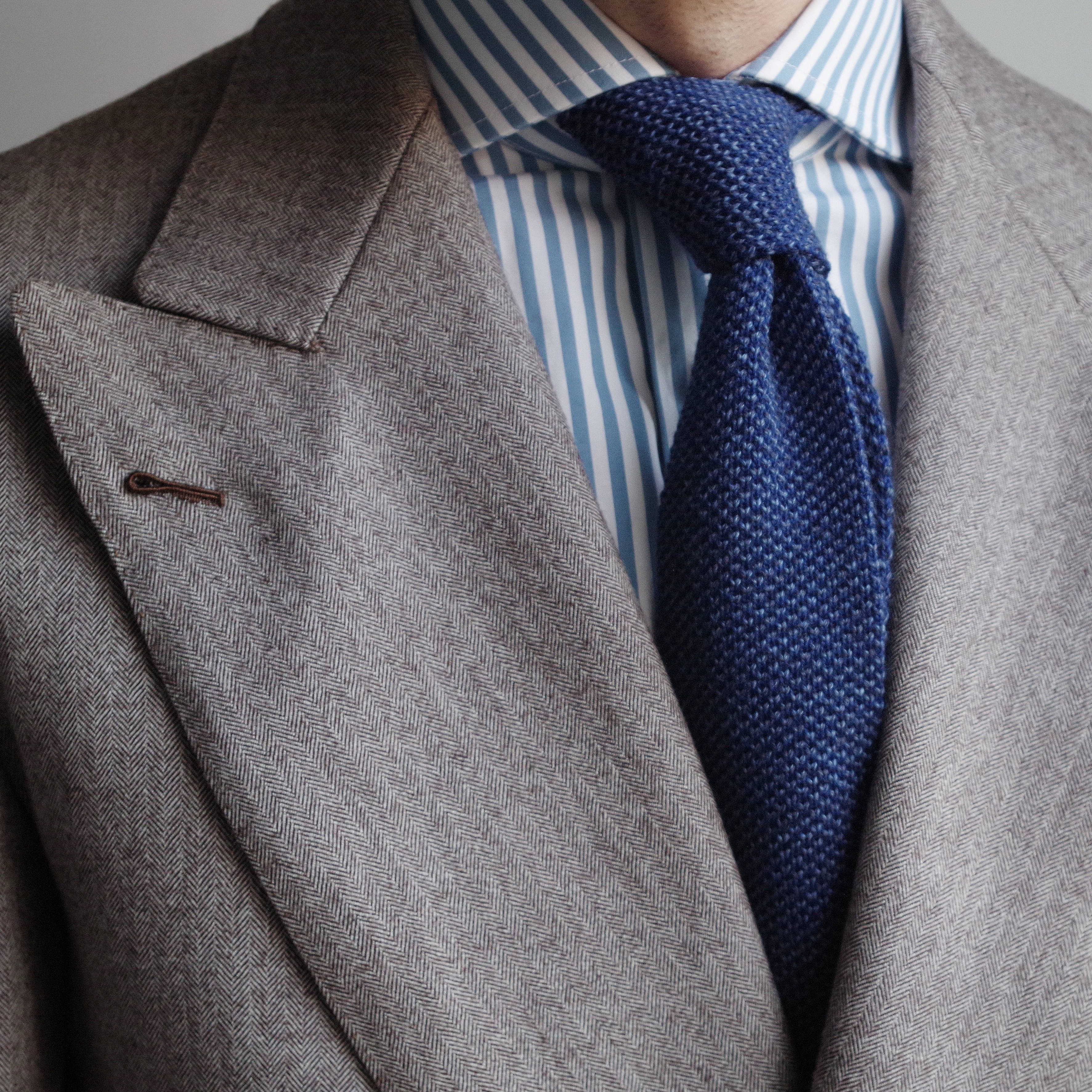 A wonderful, essential piece. If you're looking for something a little different, we suggest that you choose this knitted design with its different shades of blue. The wool gives it a warm style that you can wear anywhere. The blue colour also works very well with a suit or a cream or brown jacket, a white or striped shirt, and a handkerchief that recalls the shades of your jacket and tie.