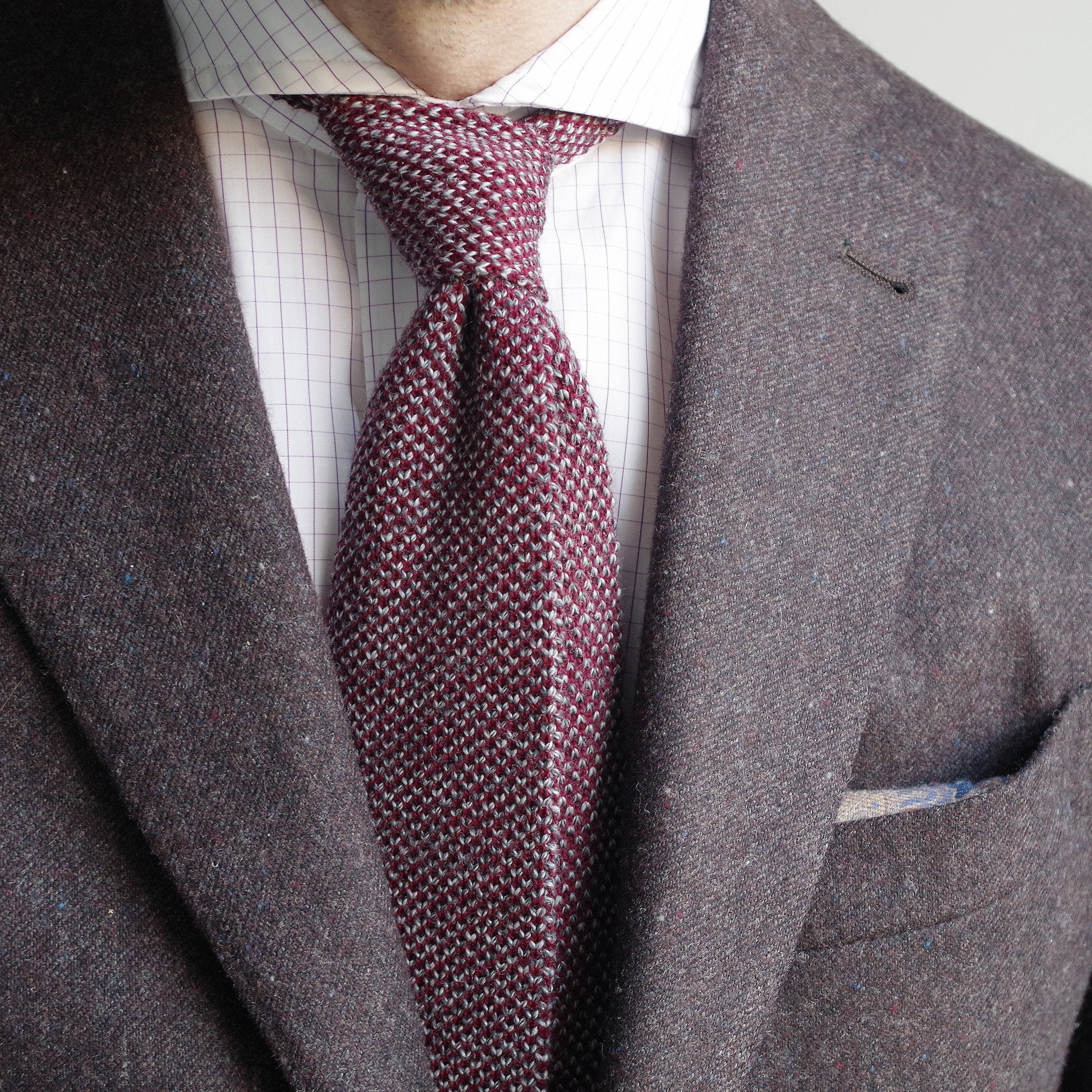 A wonderful, essential piece. If you're looking for something a little different, we suggest that you choose this knitted design with its different shades of burgundy. The wool gives it a warm style that you can wear anywhere. The burgundy colour also works very well with a suit or a brown jacket and a white checked shirt.