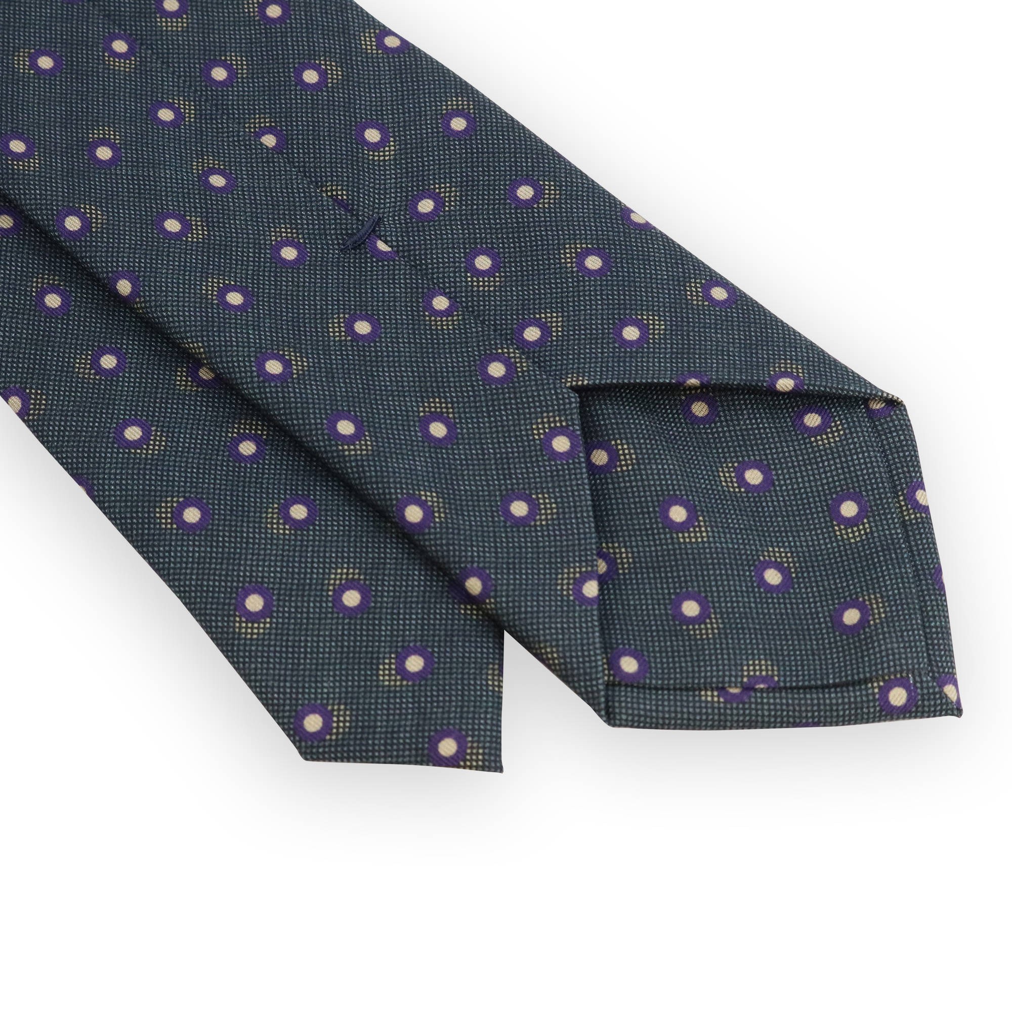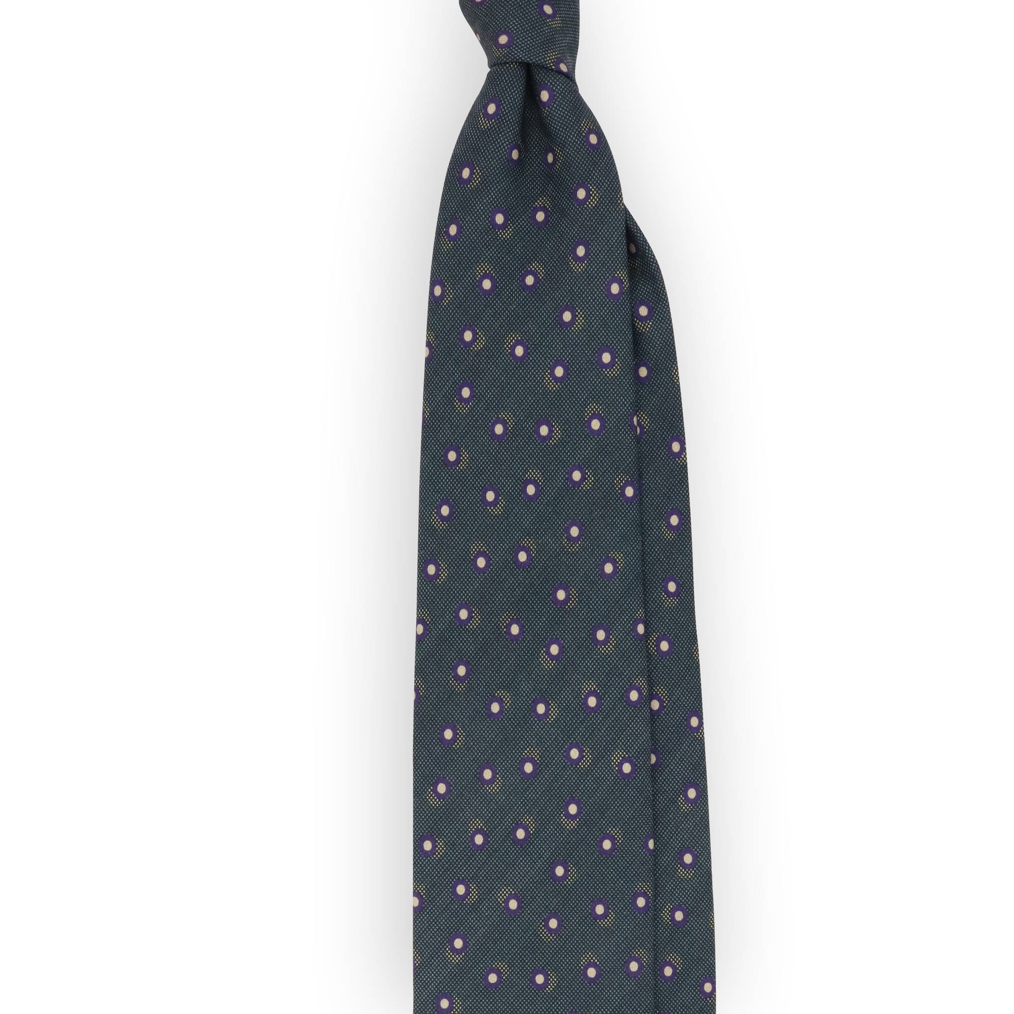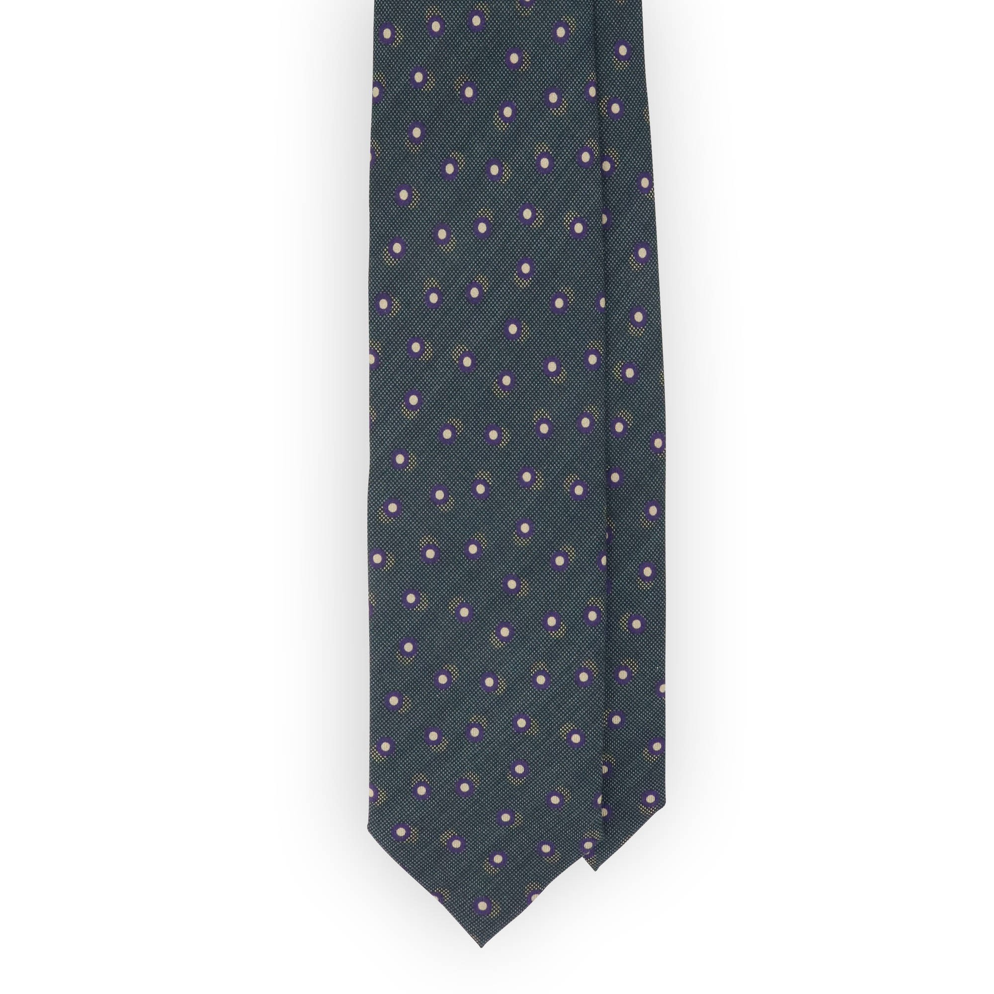Pine green tie with purple and beige dots