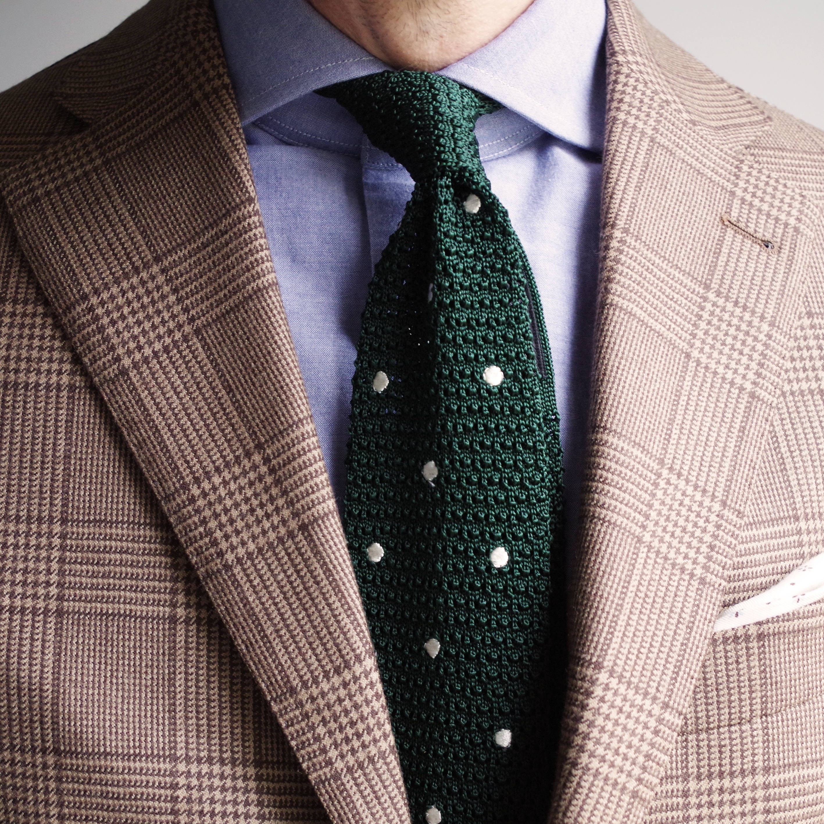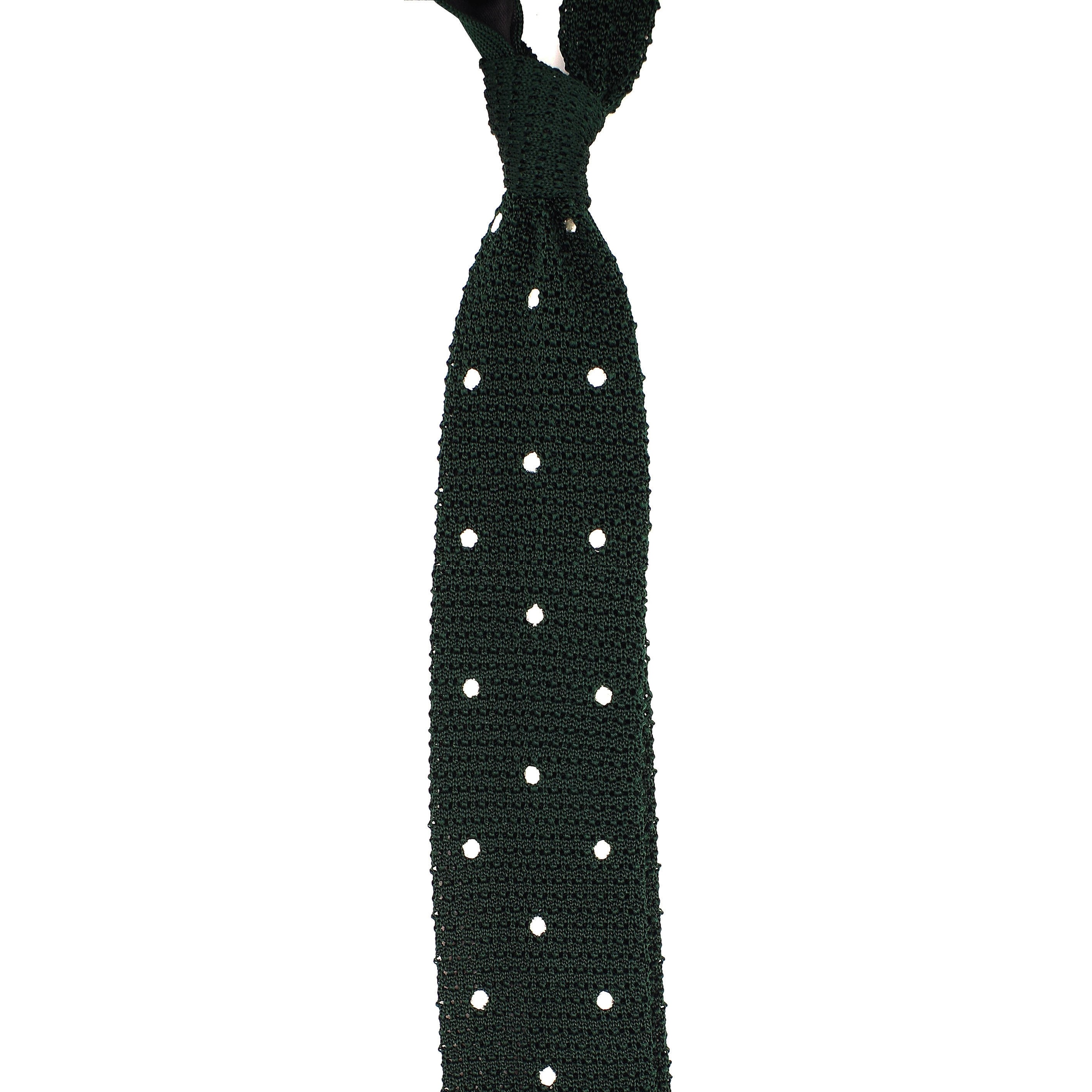 This is a wonderful, essential piece, with plenty of interesting features thanks to the green grenadine silk and small, white polka dots. It could also go very well with a blue suit, a burgundy striped shirt, and a white silk handkerchief with green dots.