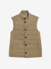Beige Technical Fabric Sleeveless Vest – Quilted, button closure, slanted side pockets.