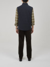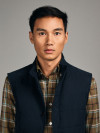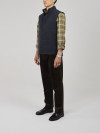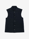 Navy Technical Fabric Sleeveless Vest – Quilted, button closure, slanted side pockets.
