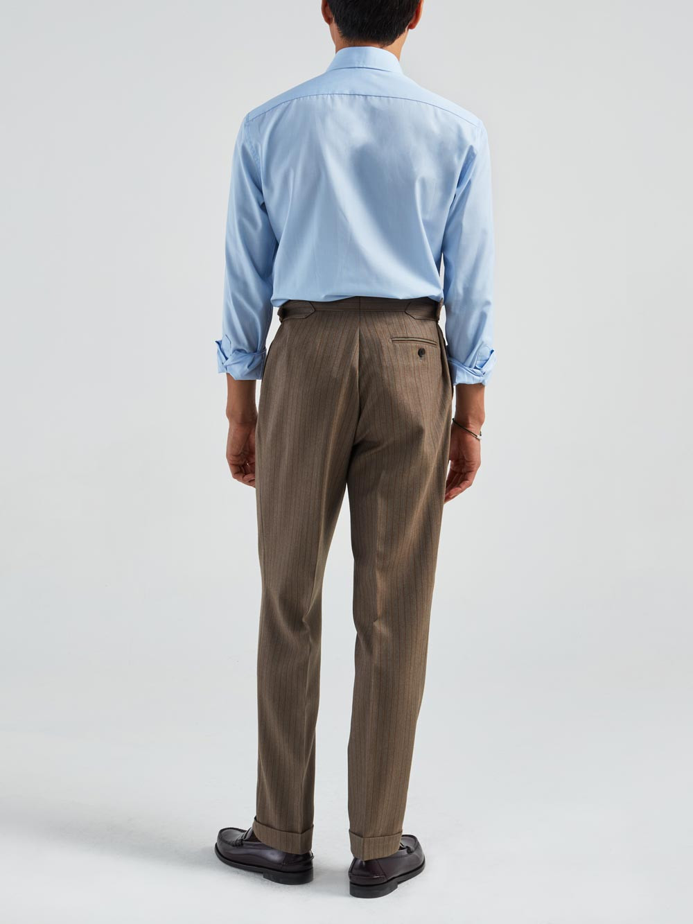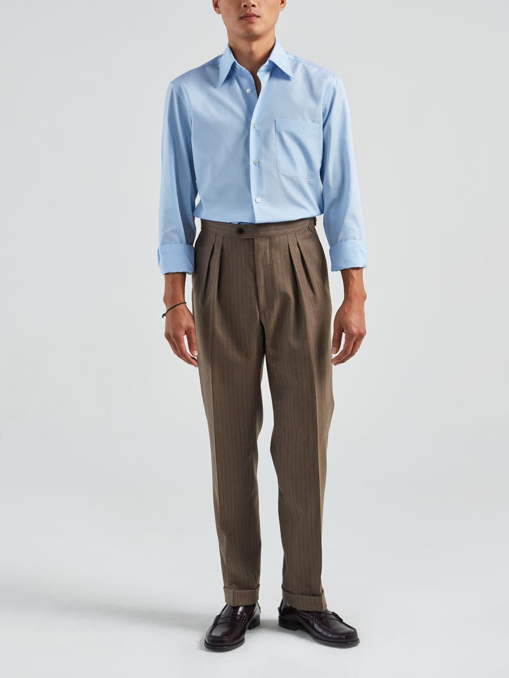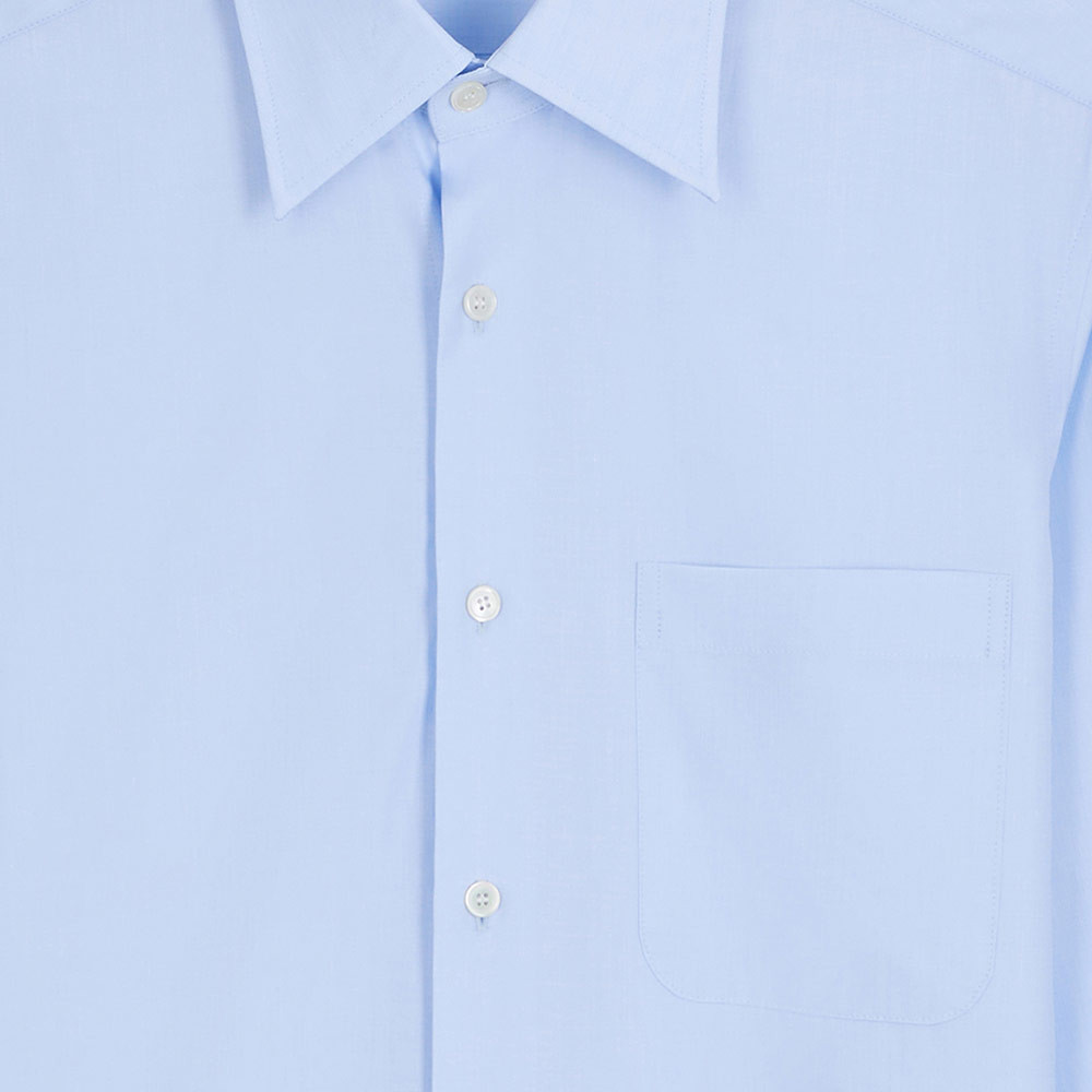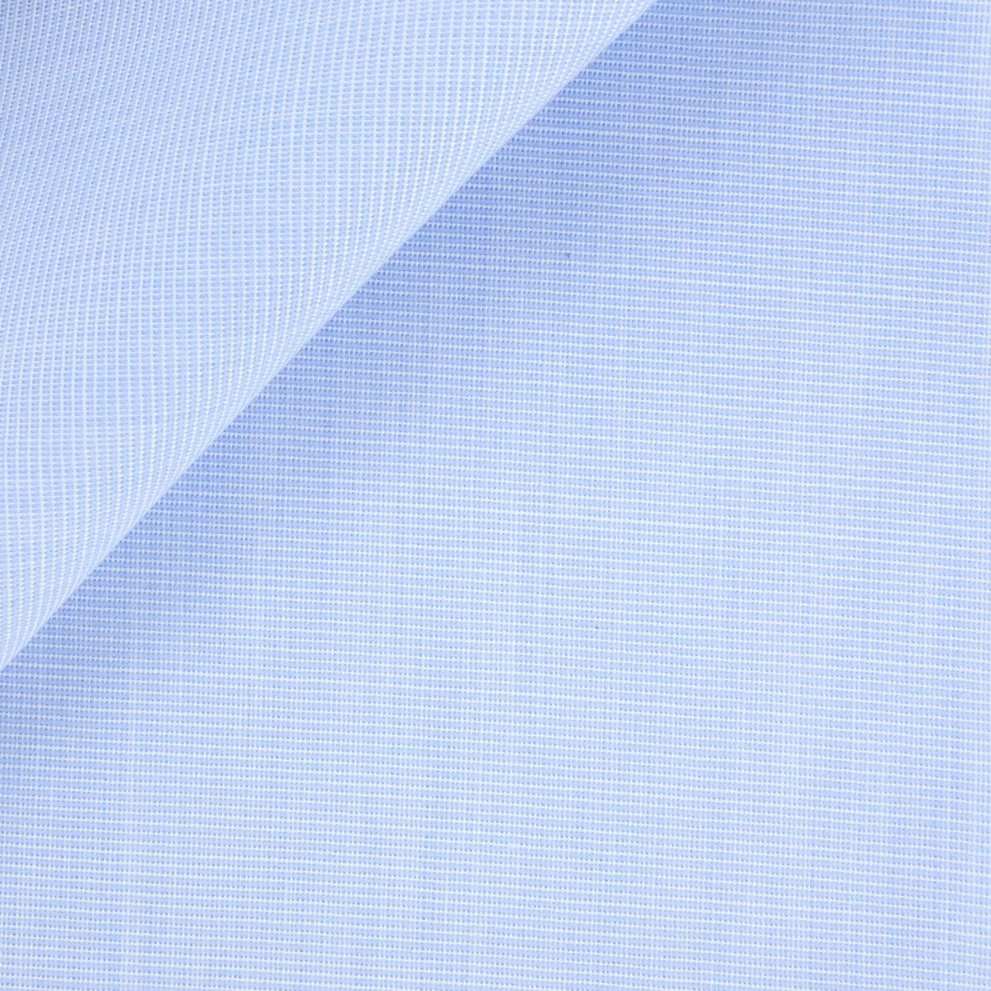 A classic, two-ply, sky blue end-on-end fabric. Ideal for smart shirts for spring and summer. The thread gives a luminous aspect to the poplin, for a sophisticated, shirt which at first looks seems to be only one colour.
