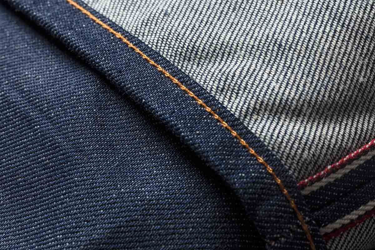 We offer classic selvedge in indigo blue and gray, woven in a 3x1 weave by Candiani in Italy. With a weight of 13oz, these are stiff weaves that will hold up very well over time.