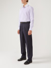 Navy Flannel Pants, waistband with belt loops, 1 deep inside pleat, single bottom without turn-up.