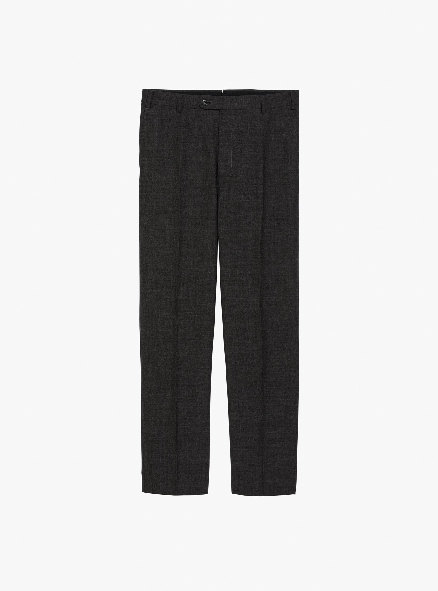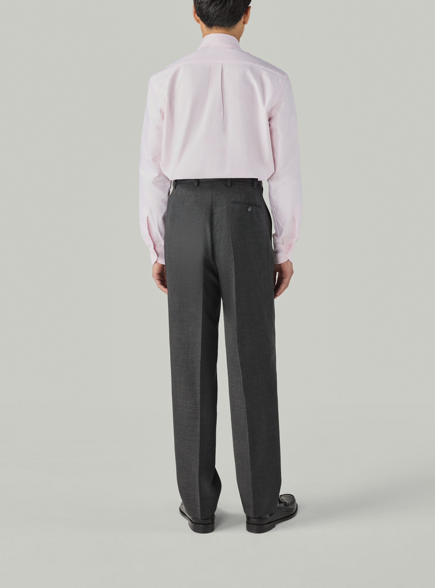 Grey Fresco Trousers, belt loops, double inward pleats, single rear pocket on the right, finished with plain hems.