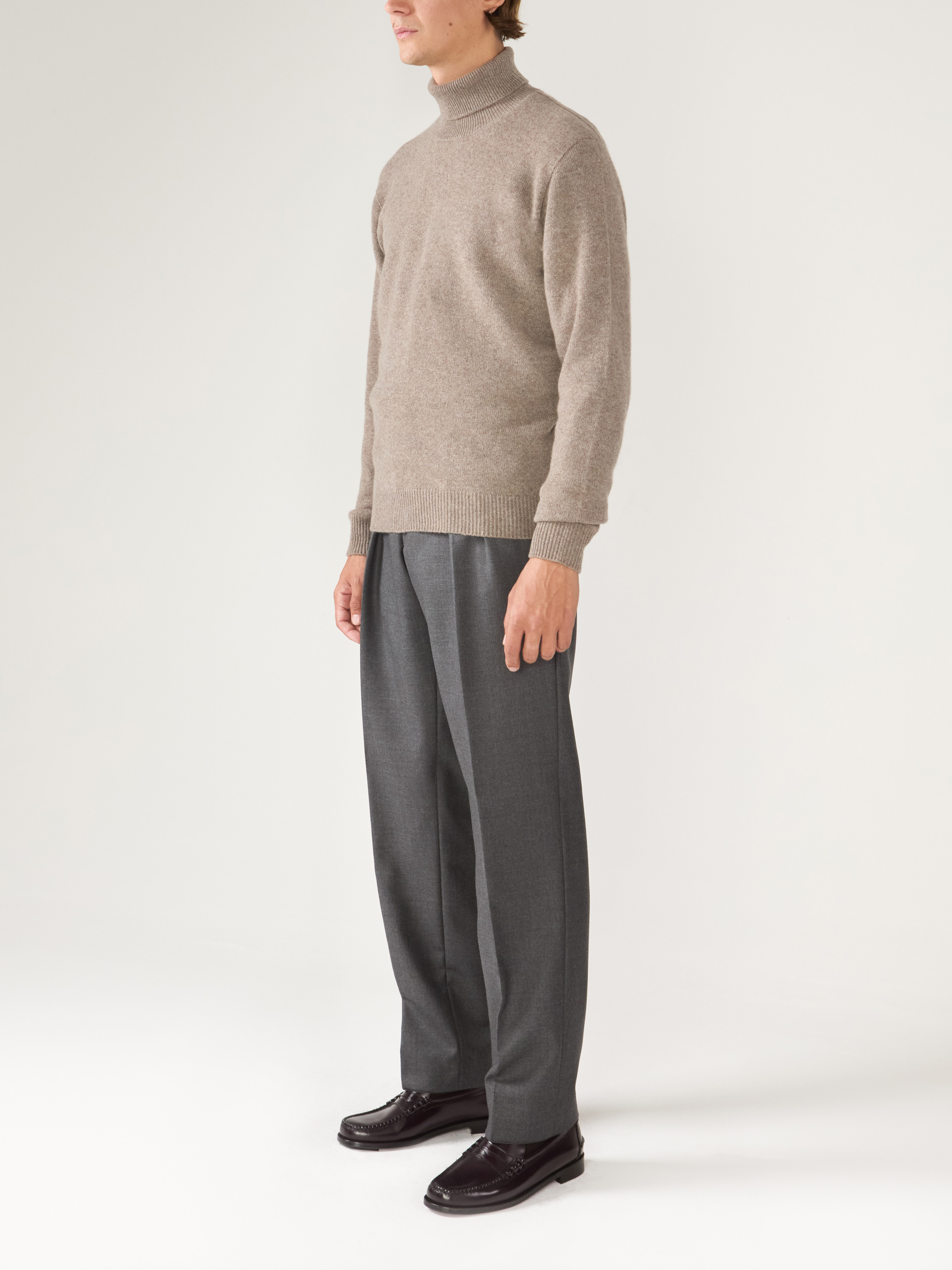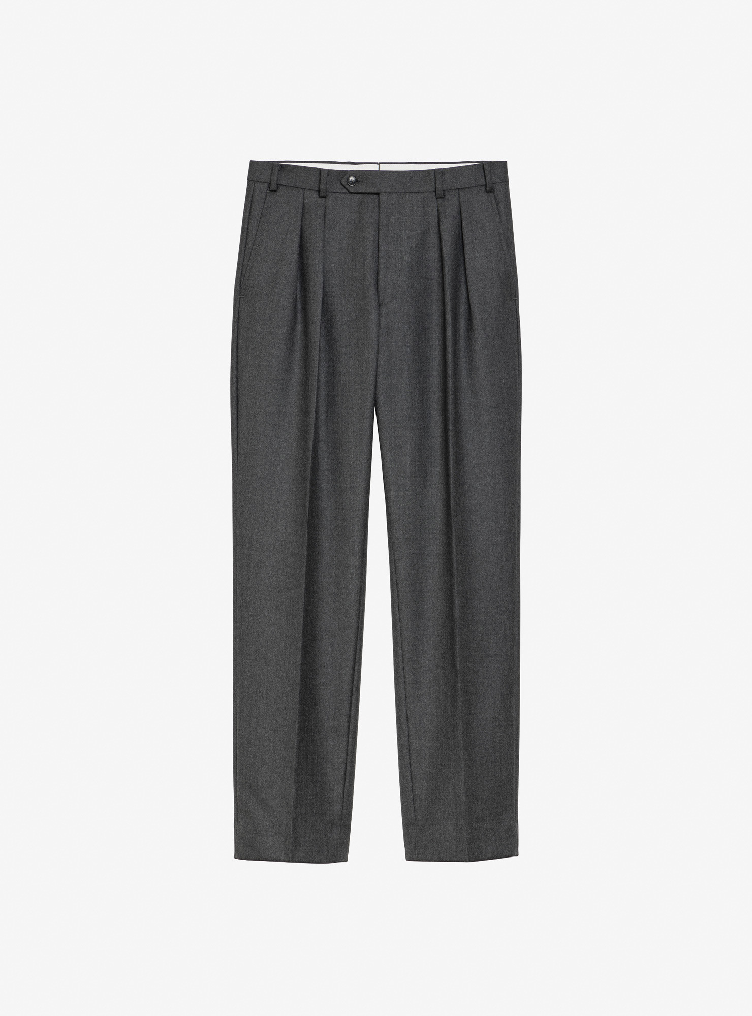 Gray Heavy Wool Pants, waistband with belt loops, two inside pleats, bottom without turn-up.