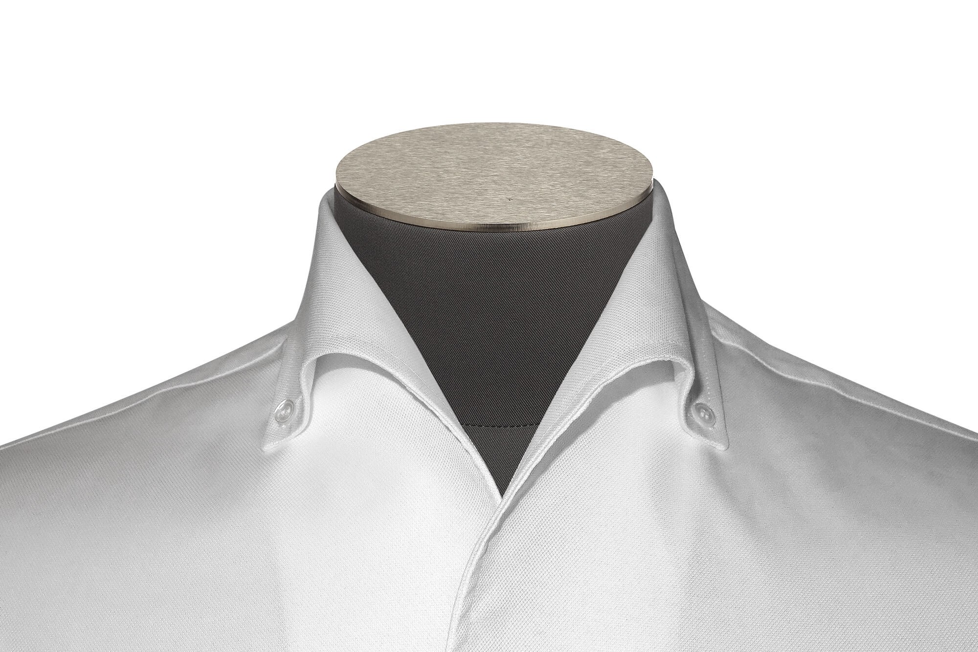 The Miami collar is ideal for casual shirts. The collar is fitted in a highly distinctive way, created from a single piece, while the points of the collar are a natural extension of the placket. It is not done up at the top, but remains securely in place at the front. Buttons hold the points of the collar to ensure that the reverse of the collar follows the shape of the neck. Choose with a soft lining in the collar options.