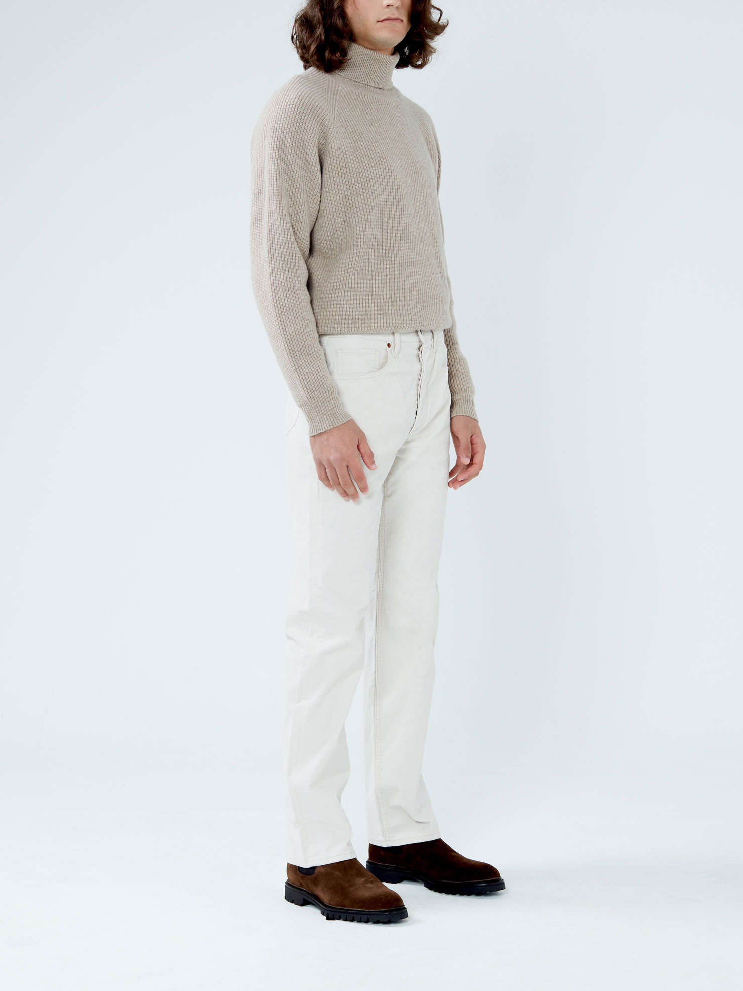 Inspired by the pullover worn by submariners, our thick turtlenecks are knitted in Italy. The assembly is done in one piece, without sewing, guaranteeing durability and longevity. The marked English half rib and the raglan sleeve accentuate the casual aspect. The cashmere and wool blend is absolutely comfortable. Each sweater is made to order, to your size.