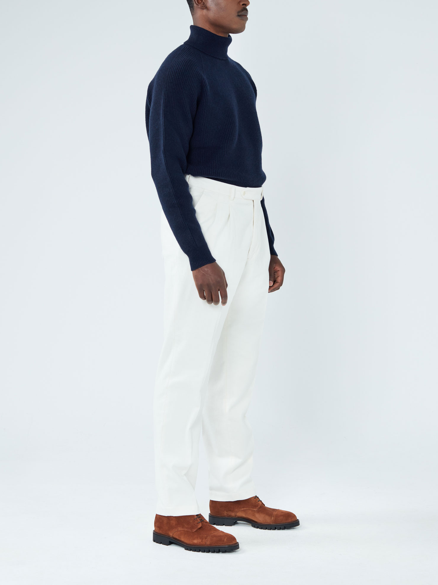 Inspired by the pullover worn by submariners, our thick turtlenecks are knitted in Italy. The assembly is done in one piece, without sewing, guaranteeing durability and longevity. The marked English half rib and the raglan sleeve accentuate the casual aspect. The cashmere and wool blend is absolutely comfortable. Each sweater is made to order, to your size.