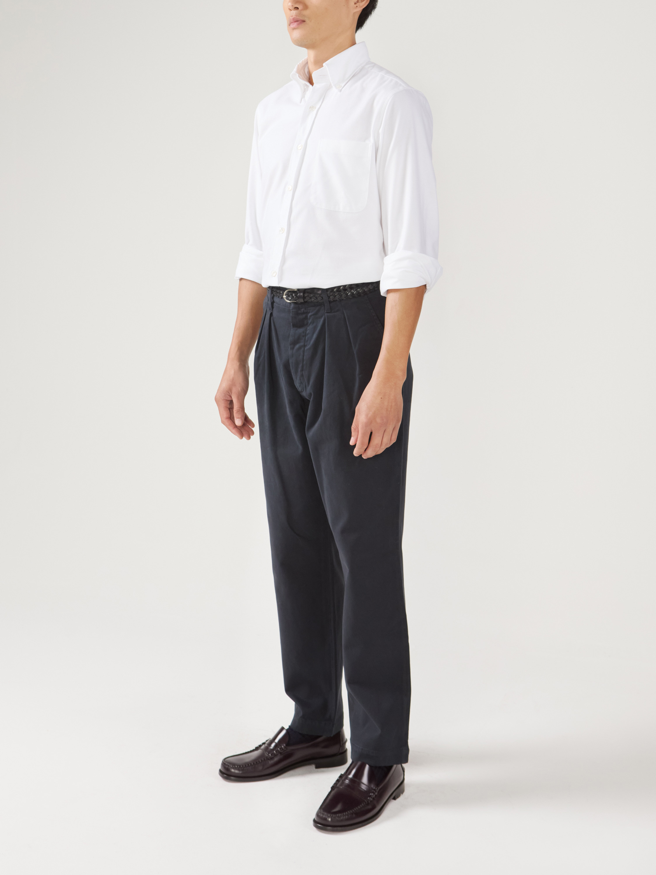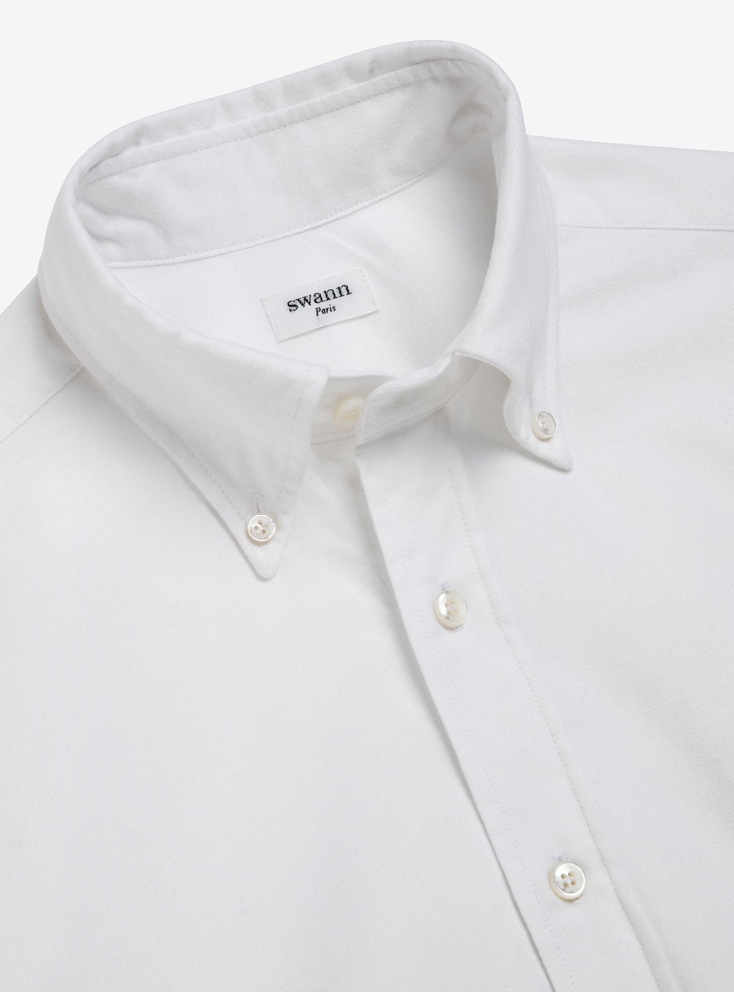 White brushed oxford from Thomas Mason. Thick and soft, sporty and elegant. An excellent choice for this winter. If you want to enhance the sporty effect, opt for an ultra-soft collar.