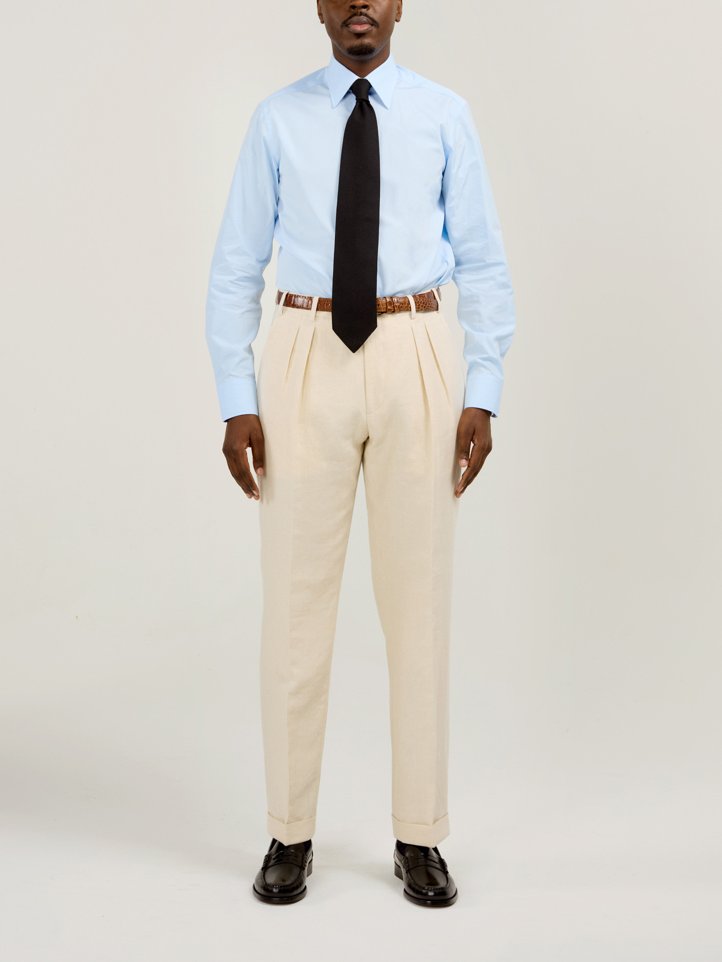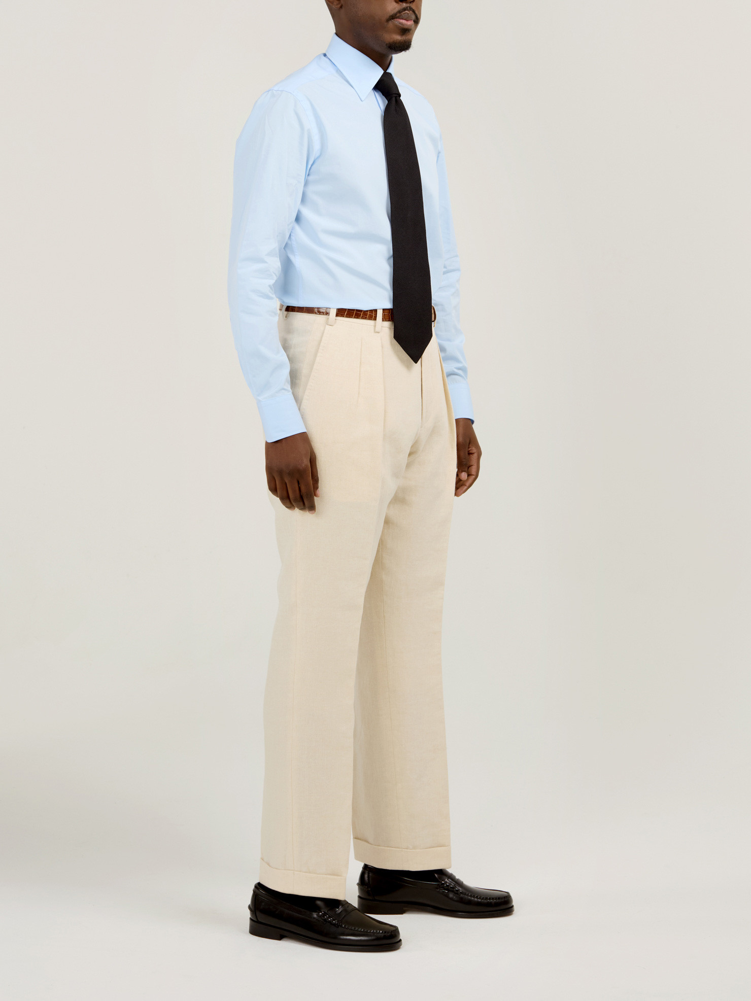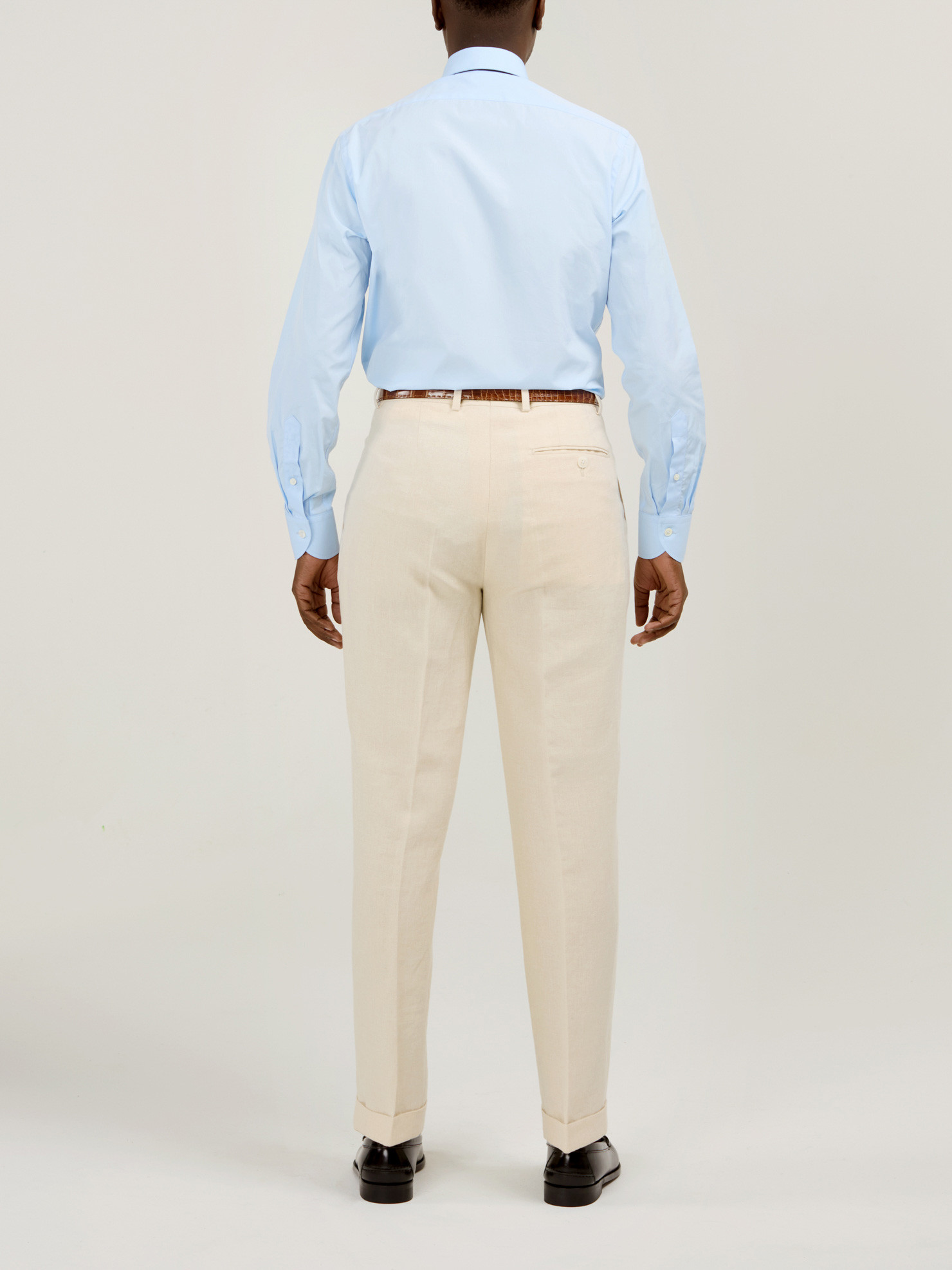 Beautiful blue poplin, opaque. For all-year-round wear, this is the classic white poplin shirt. Very good value for money.