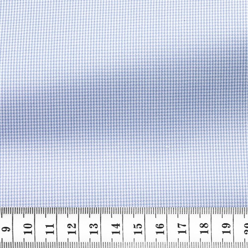 80s two-ply pinpoint with hounds tooth motif in blue and white. Thick fabric. A classic for smart or casual shirts. One of our best value for money offers.