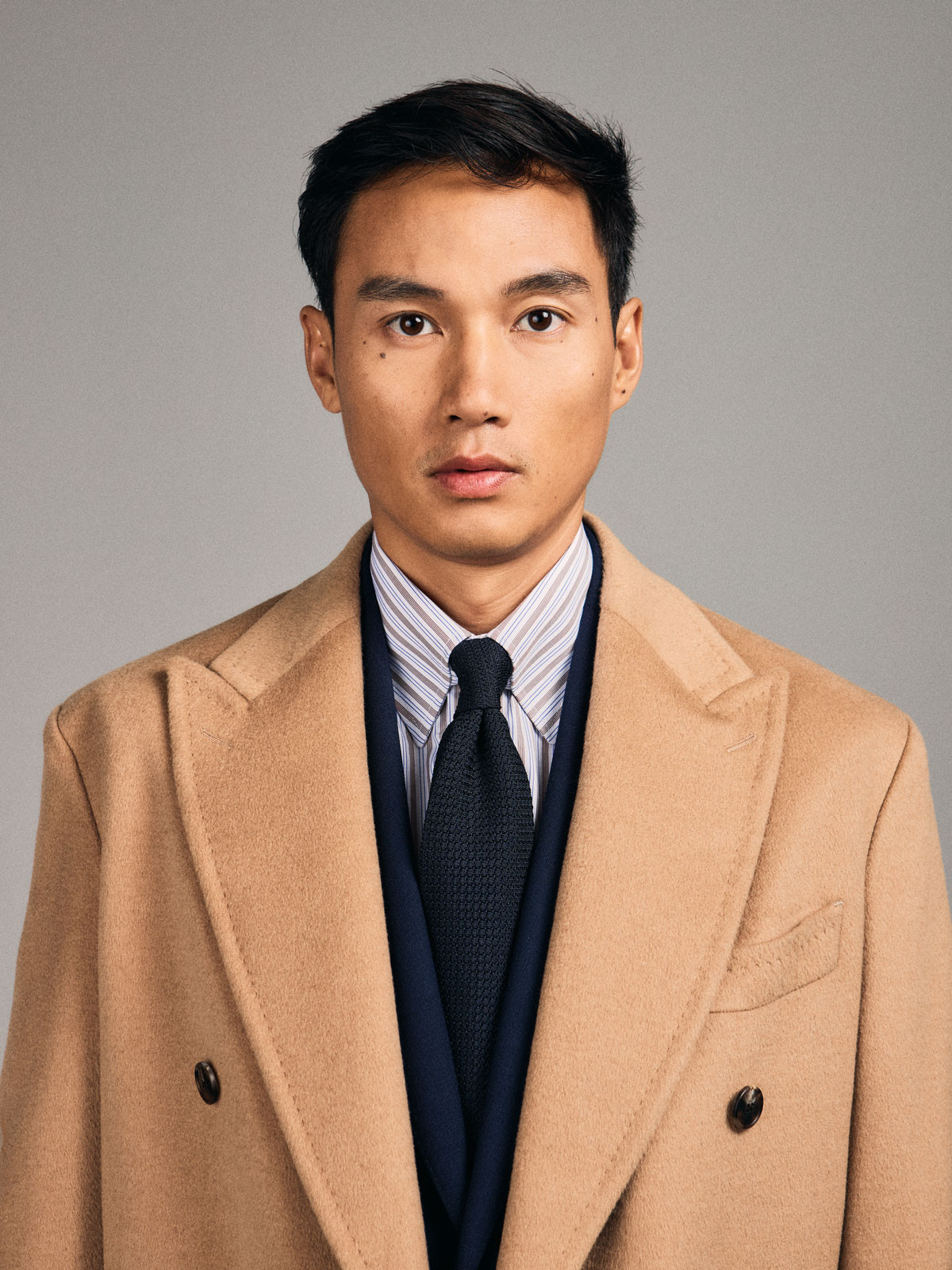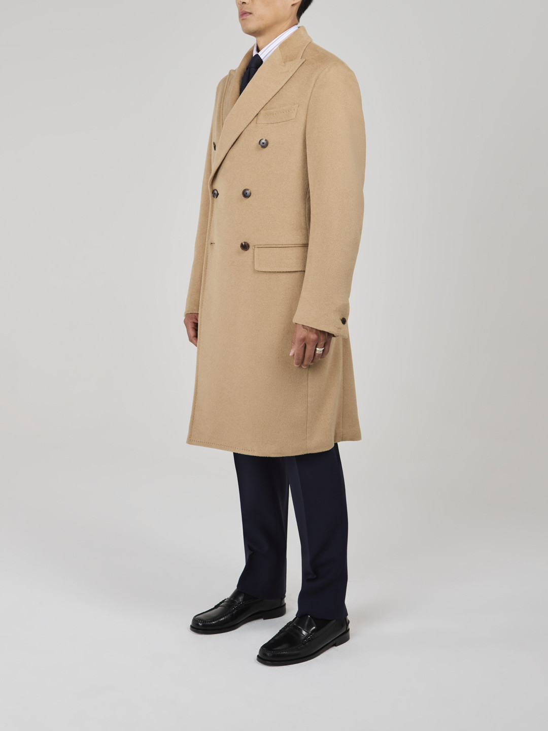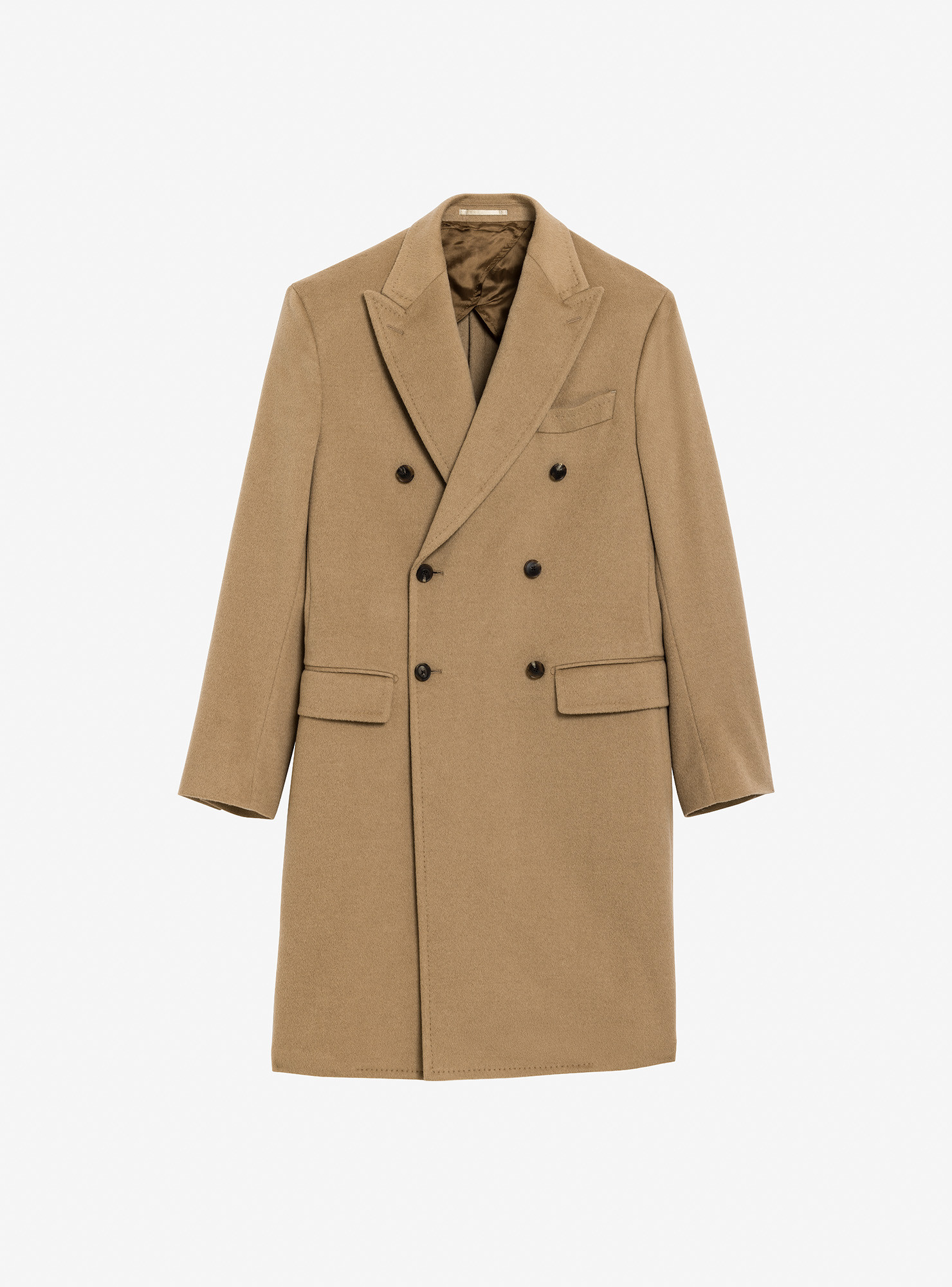Camel Double-Breasted Wool Coat – 6 Buttons