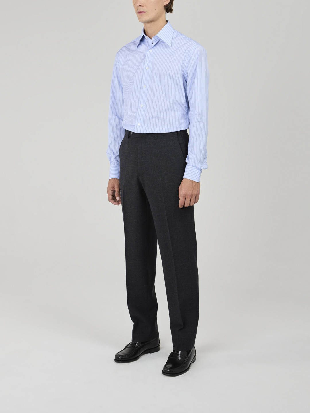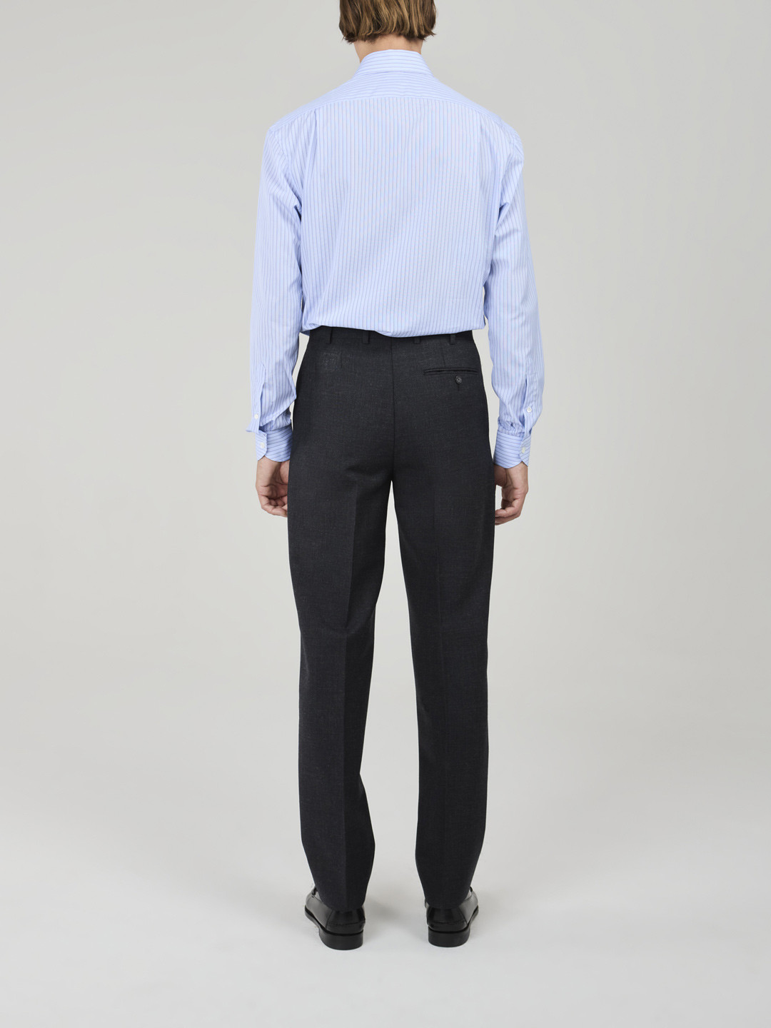 Dark Grey Fresco Trousers with side adjusters, no pleats, plain hem without turn-ups. Made in Italy.