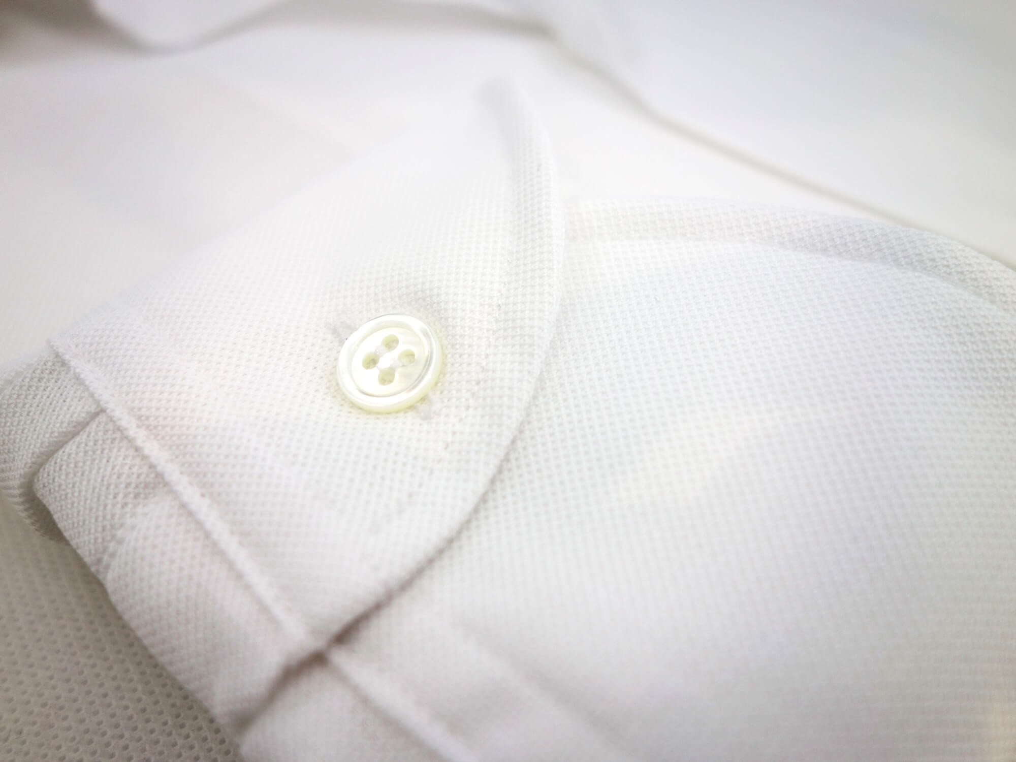 The ways in which a collar is cut and fitted are key aspects of a shirt. When the base of the collar is cut out, it rises up at the front (where the buttonhole is located) allowing it to bear the weight of the tips of the collar, resulting in a better fit.