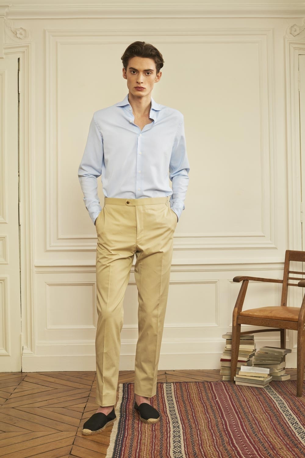 Two-ply pale blue Oxford 140's from Thomas Mason : very beautiful, super comfortable to wear, lightweight, strong, very nice feel. All the superlatives work for one of our favourite fabrics! With a positano or classic collar, this is a great dress shirt. With a soft or button down collar and substantial buttons, it's a super comfortable sports shirt.