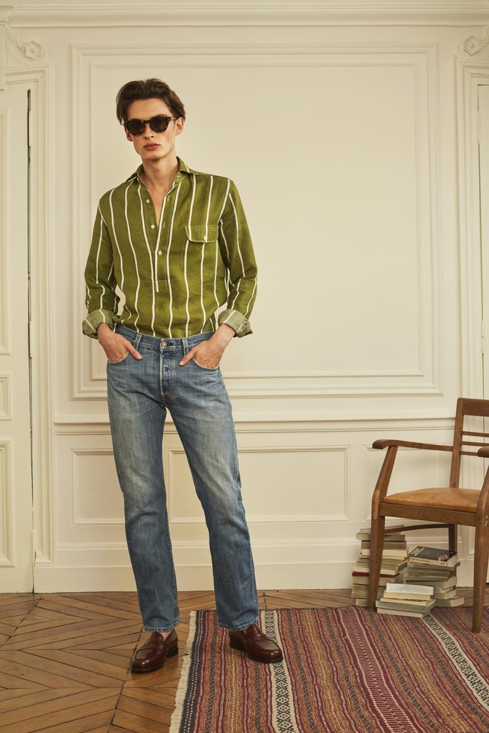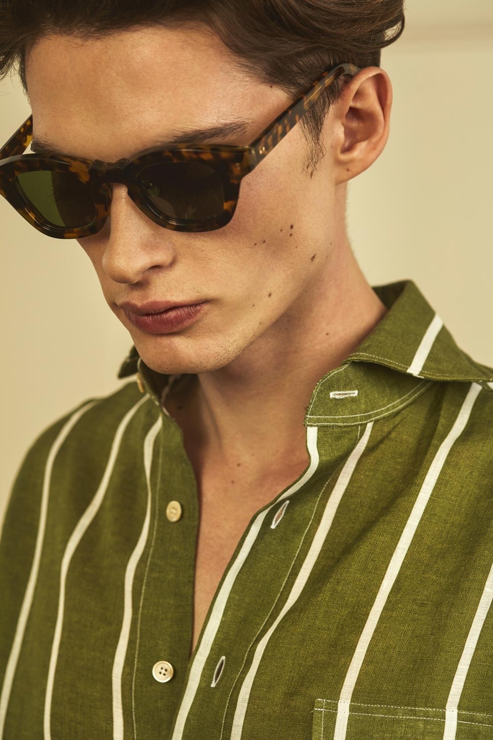 Albini striped linen, sublime intense green. A shirt for the beach, the bar or a summer dinner. Camp collar or ultra-soft classic collar because the weather's hot and you're good-looking.